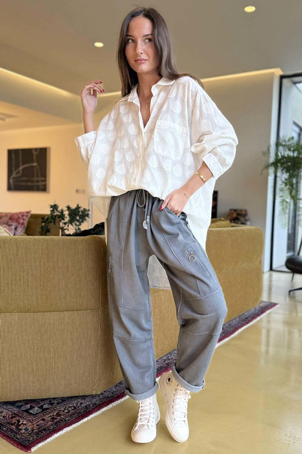 Meet your new go-to jogger: effortlessly chic in a soft, washed grey. Made from gentle stretch fabric, they move with you while keeping you looking polished, not slouchy. The adjustable drawstring waist ensures all-day comfort, while subtle zip details and a relaxed, vintage wash add a touch of contemporary style. Pair them with your favourite t-shirt or smart-casual shirt—or elevate your comfort game with the matching hoodie for those days when ultimate cosiness is non-negotiable.