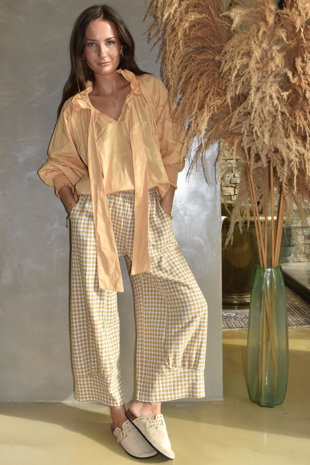 - These trousers have been thoughtfully designed to pair perfectly with the Annie gingham smock blouse or frock coat for a full, coordinated look—or worn alone as a statement piece in their own right.