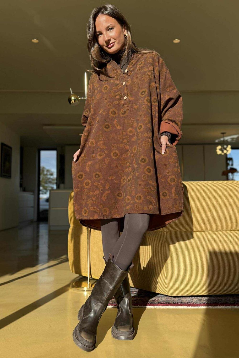 - Tunic-style shirt with a relaxed, oversized silhouette
