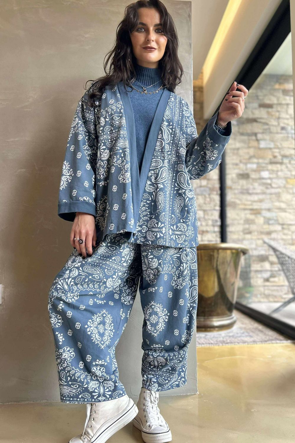 The barrel-leg silhouette is a Laundry b favourite — effortlessly cool, flattering, and timeless. Adorned in a classic bandana print, these trousers bring a subtle bohemian feel to a wardrobe staple. Crafted from soft, premium sweatshirt cotton with just the right amount of stretch, they strike the perfect balance between relaxed and refined. A gently elasticated waistband and discreet in-seam pockets keep the look clean and practical, while their versatile style pairs effortlessly with everything in your Laundry b wardrobe.