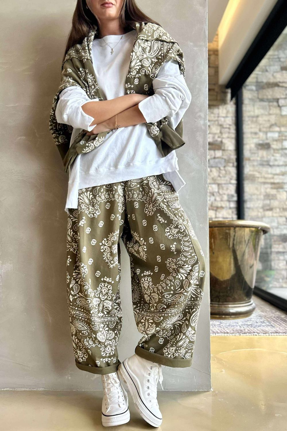 The barrel-leg silhouette is a Laundry b favourite — effortlessly cool, flattering, and timeless. Adorned in a classic bandana print, these trousers bring a subtle bohemian feel to a wardrobe staple. Crafted from soft, premium sweatshirt cotton with just the right amount of stretch, they strike the perfect balance between relaxed and refined. A gently elasticated waistband and discreet in-seam pockets keep the look clean and practical, while their versatile style pairs effortlessly with everything in your Laundry b wardrobe.