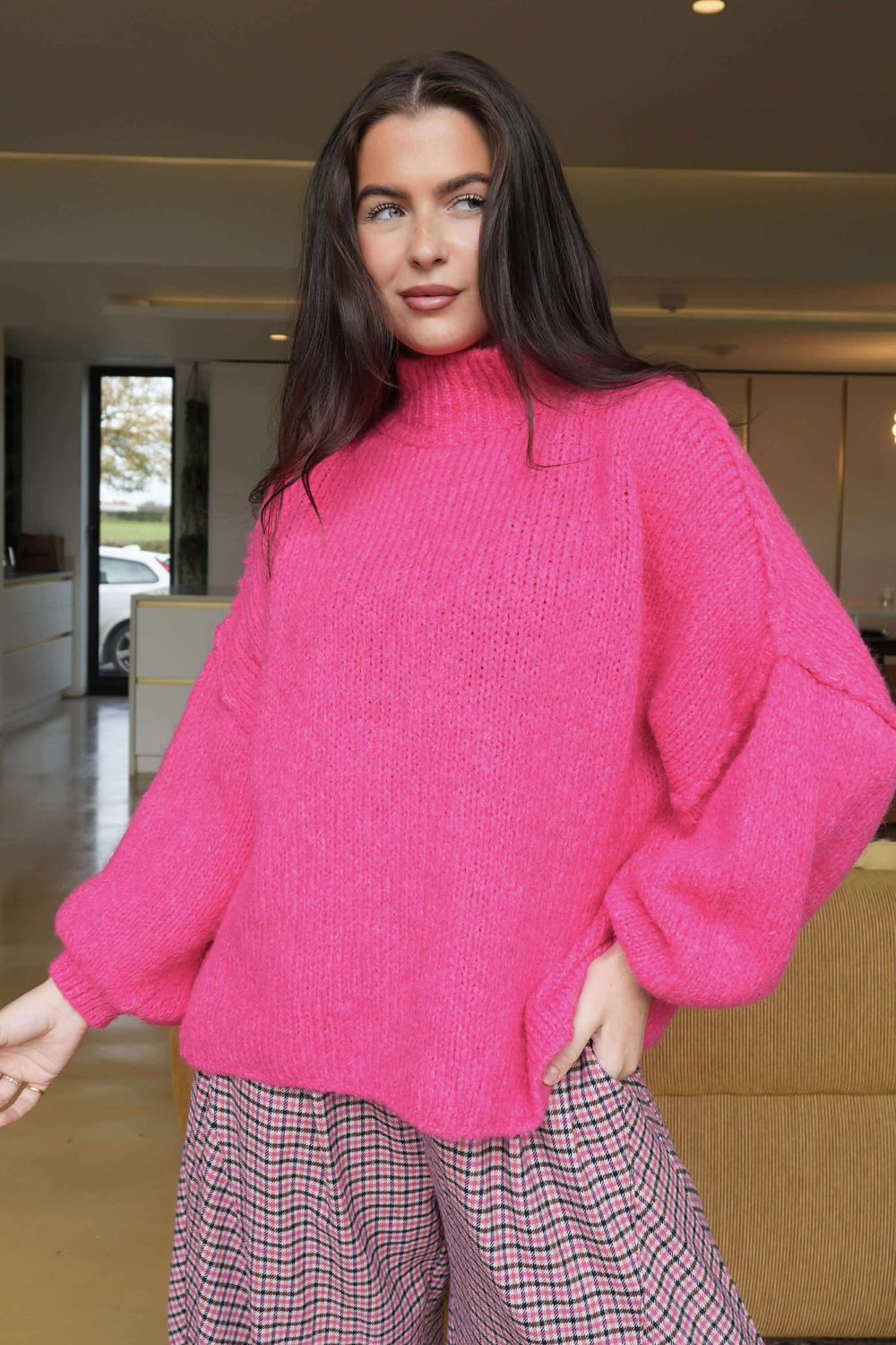 Wrap yourself in effortless style with our Big Softie Funnel Grunge Knit is a women’s one size knit jumper in pink. Part of our much-loved Big Softie collection, this piece is super cosy and perfect for transitioning into the autumn-winter season. Designed with a slouchy, grunge-inspired silhouette, it’s the ultimate throw-on for laid-back styling. The cosy funnel neckline not only keeps you snug but also adds to that relaxed, grunge edge. An easy-to-wear knit that brings comfort and cool-girl style together in one.