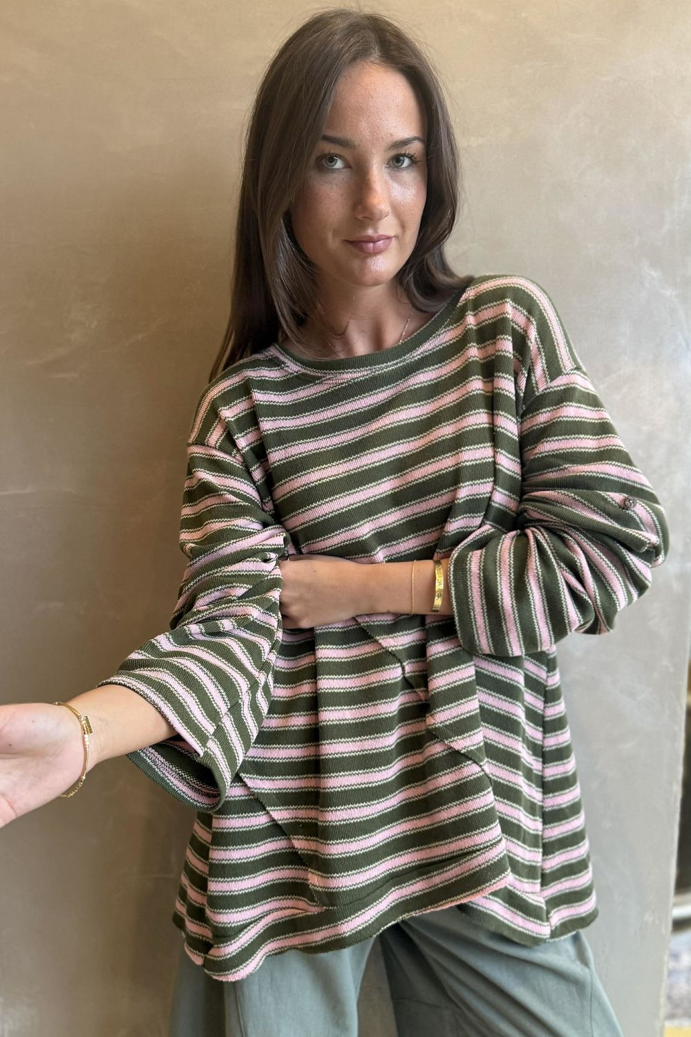 - Women's one-size fine knit top/ jumper in green and pink tones