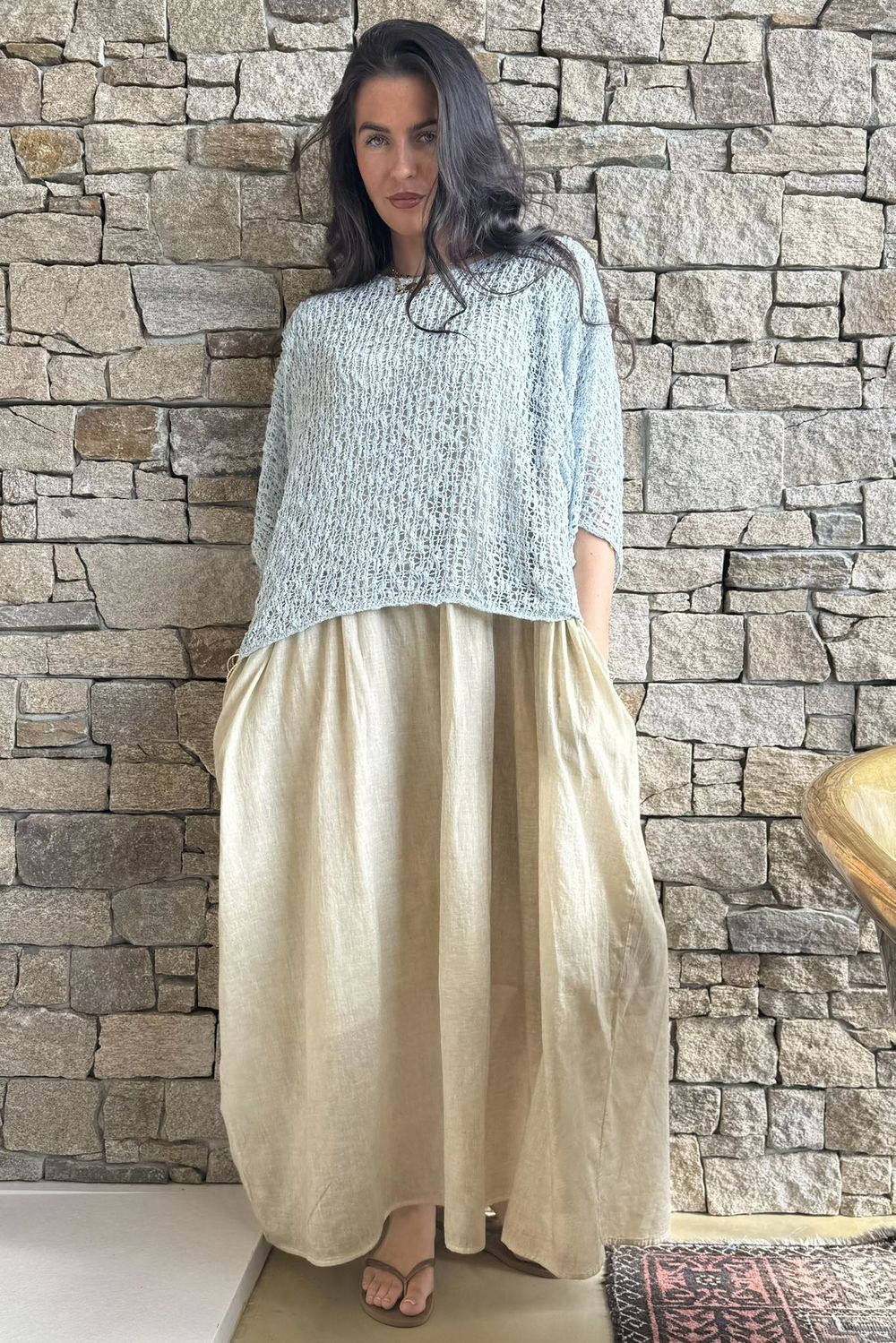 Introducing the epitome of summer chic: the Laundry B Cloud Loose Box Knit in a powder blue tone. This season, elevate your style with a harmonious blend of comfort and sophistication. Made from the softest, breathable materials, this cloud-like knit is designed to effortlessly drape over your frame, embracing you in a gentle embrace of luxury.