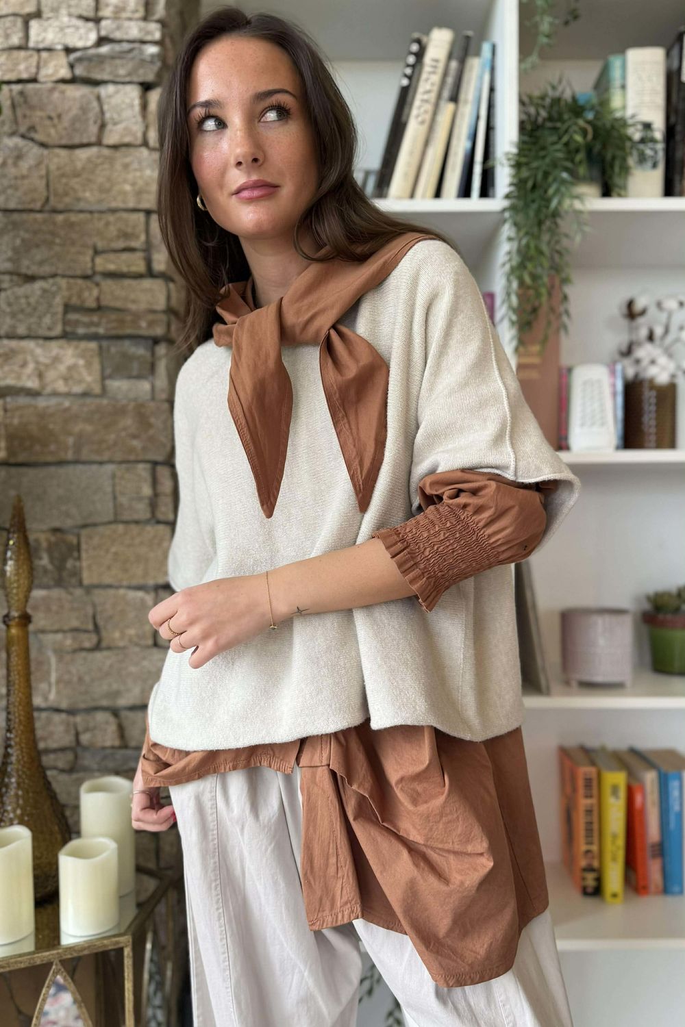 Every wardrobe needs that knit - the one that pulls an outfit together without trying too hard. This style is it. Made from a sumptuously soft stretch knit, this one-size jumper feels as luxurious as it looks. Its classic boxy silhouette makes it versatile enough to wear solo for a clean, minimal look, or layered over your go-to shirts, long sleeves, or dresses for added texture. Timeless, versatile, and endlessly wearable, this is the kind of piece you'll reach for again and again.