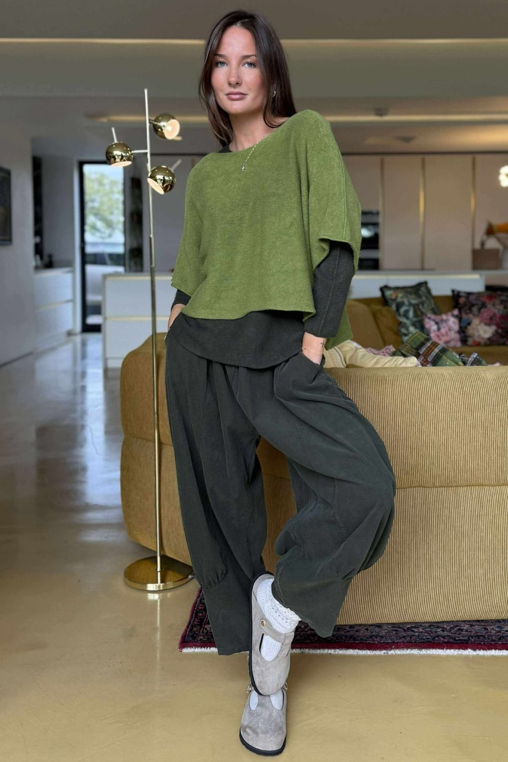 - Women's one size trouser in deep moss green
