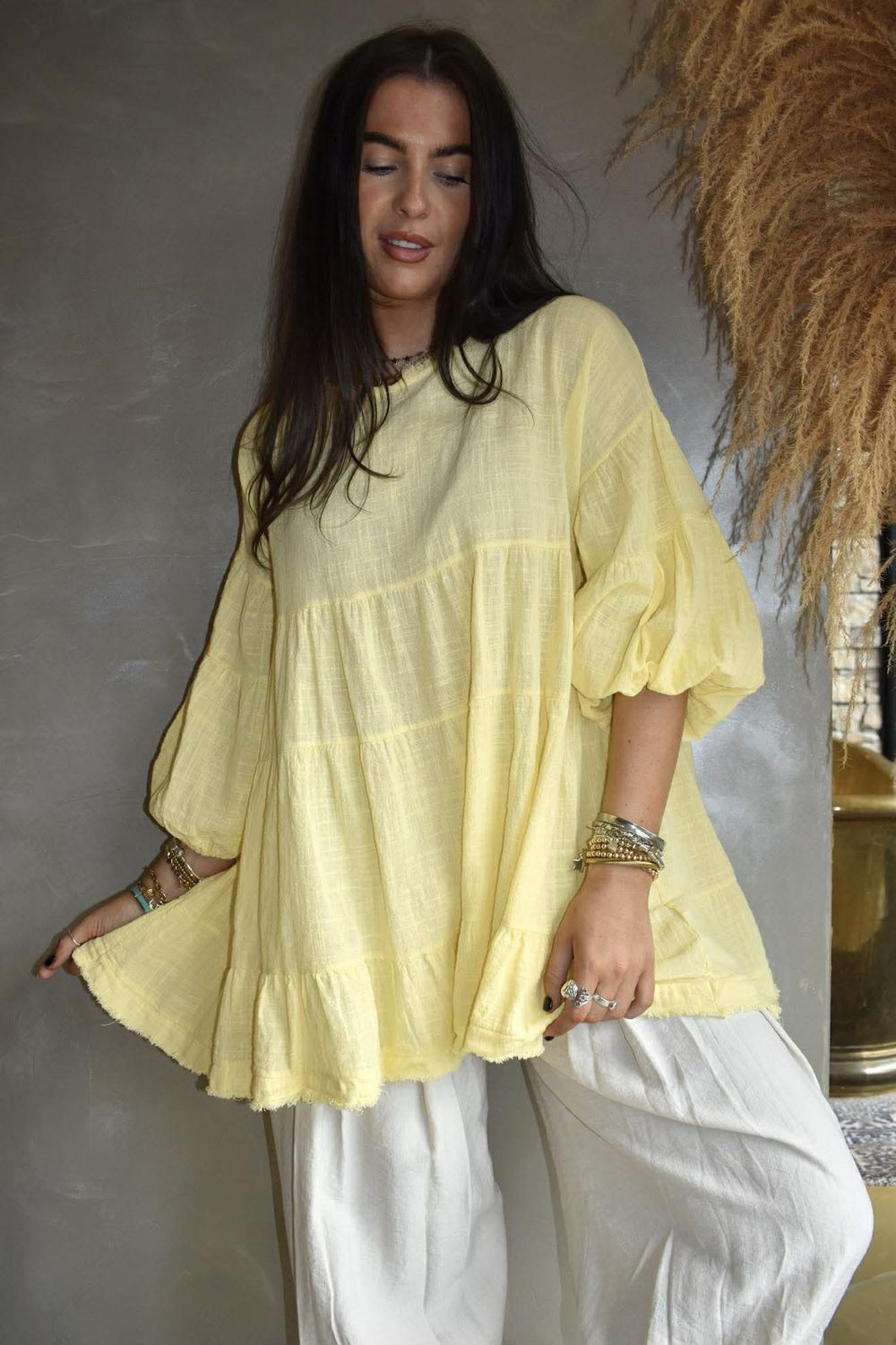- At Laundry B, we’re all about the details, raw-edge finishing adds an organic, lived-in touch, giving this top a unique, artisanal feel.