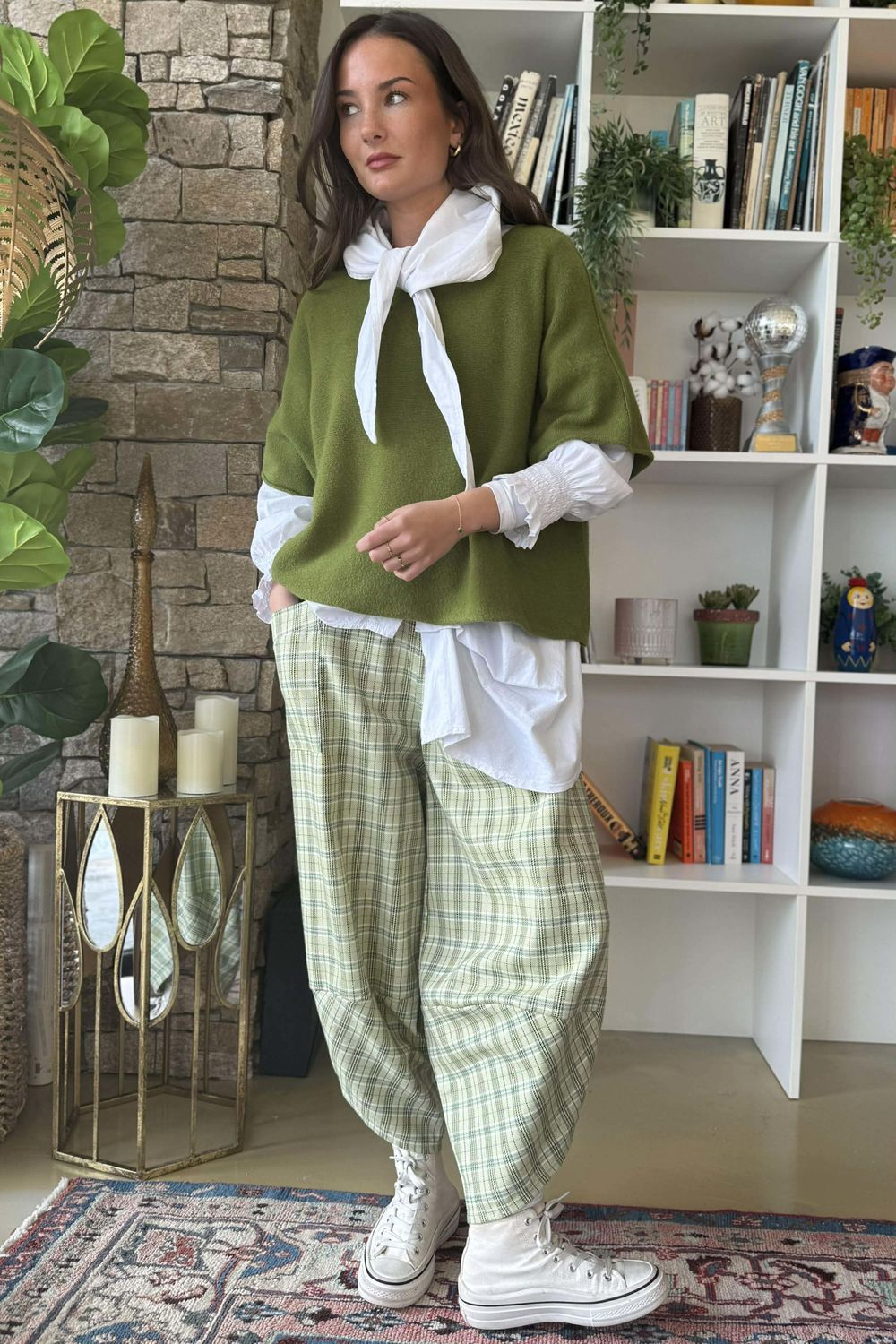 Plaid has never looked this effortlessly cool. Meet our Shelby Barrel trousers, reimagined in a bold cotton-blend plaid that instantly elevates any outfit. With their signature barrel silhouette, they strike the perfect balance between relaxed and refined, while the eye-catching print injects a playful twist into your wardrobe. Style them with a chambray denim shirt, a classic perfect tee, or a cosy knit, these trousers make it easy to bring personality to every look.