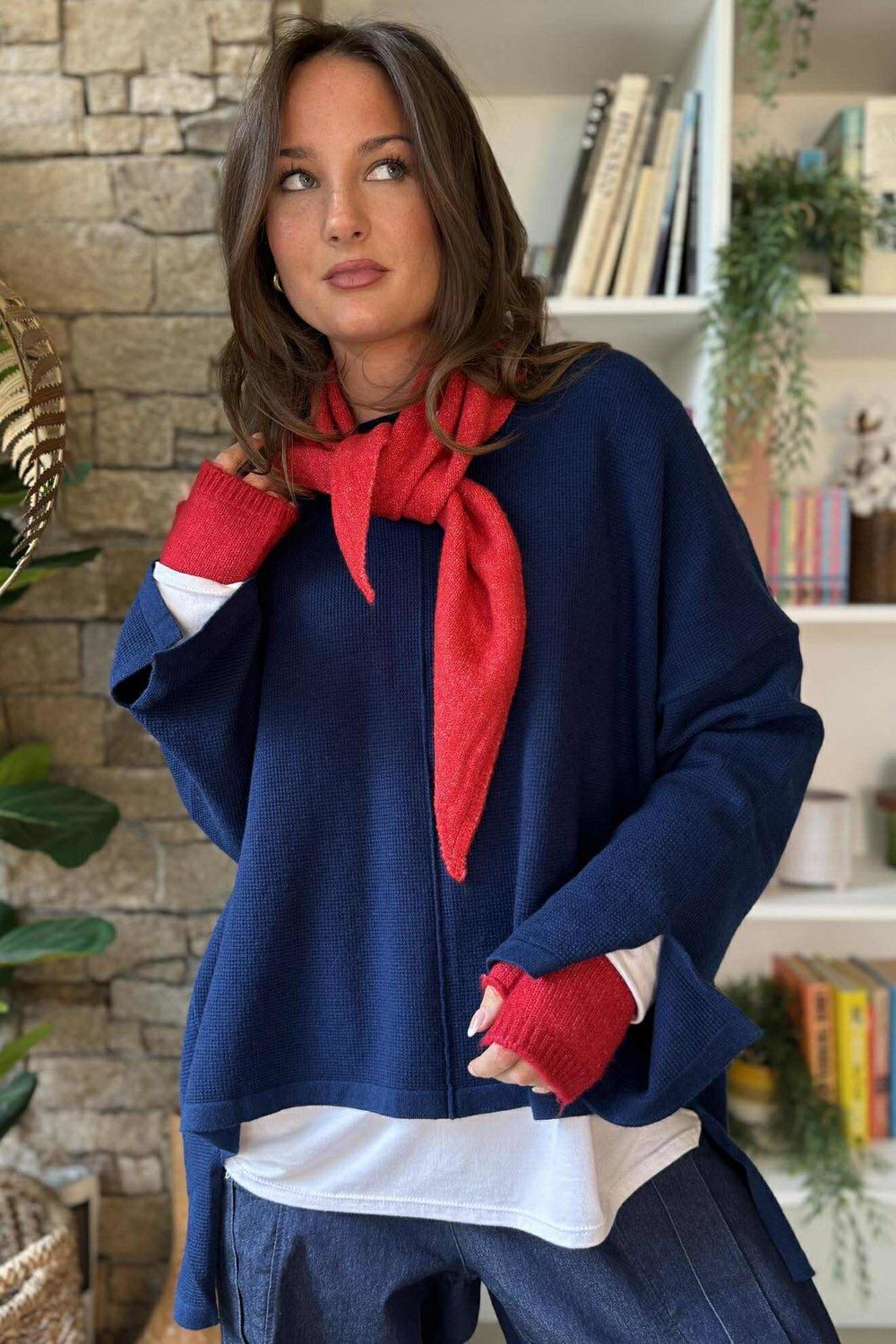 Designed with a relaxed boxy silhouette and a flattering high-low hem, it drapes beautifully on all body shapes, making it an effortless wardrobe staple. The dropped shoulder and long sleeves add to its laid-back appeal — whether you wear the sleeves pulled over your hands for a cosy feel or pushed up for an effortlessly styled look.