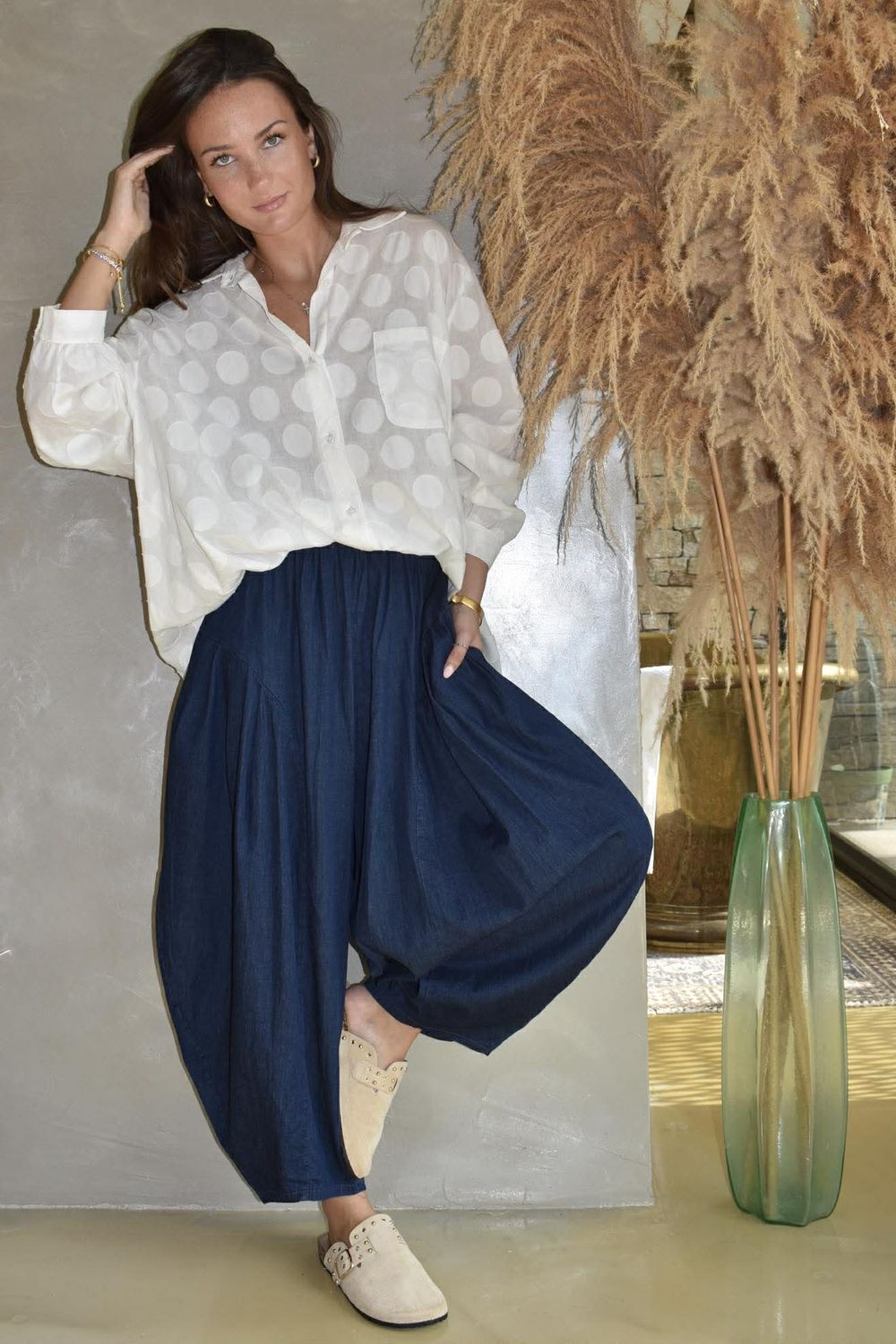 If you’re already devoted to our iconic Sia silhouette, consider this your sign — the Sia Barrel Pants have arrived in a lightweight denim, and they’re everything. The same beautifully balanced barrel shape you know and love, now reimagined in an airy, breathable denim that feels just right for the warmer months. They hold their structure in all the right places while still offering that effortless ease we’re always chasing.