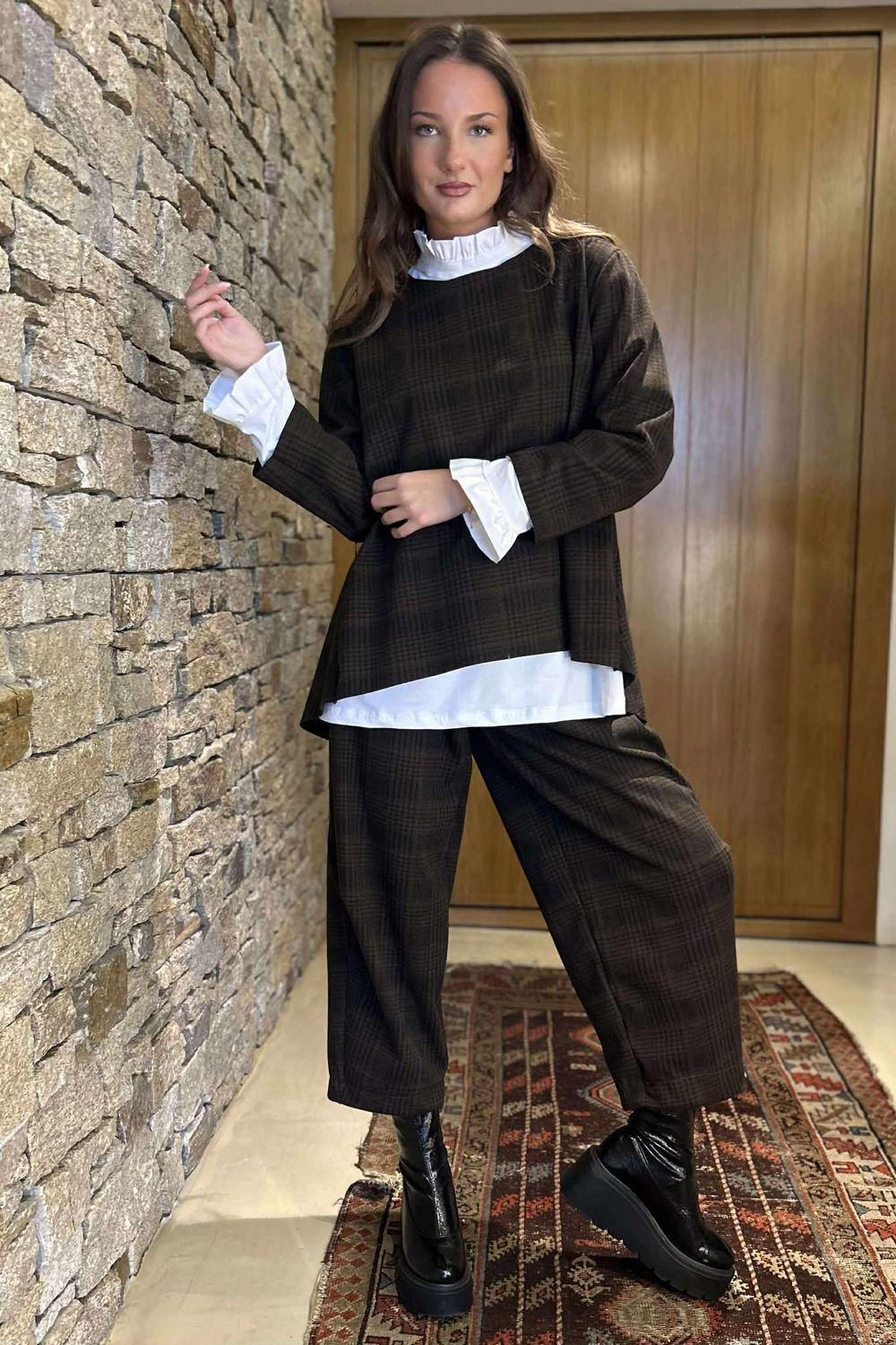 Elevate your everyday style with our one-size women’s top in a classic Prince of Wales plaid. Designed with a relaxed drop-shoulder silhouette, this piece is perfect for dressing up or down, offering effortless sophistication for any occasion.