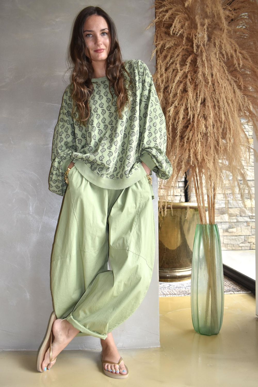 Made in ItalyIndira Lantern Sleeve Sweatshirt Matcha & Moss