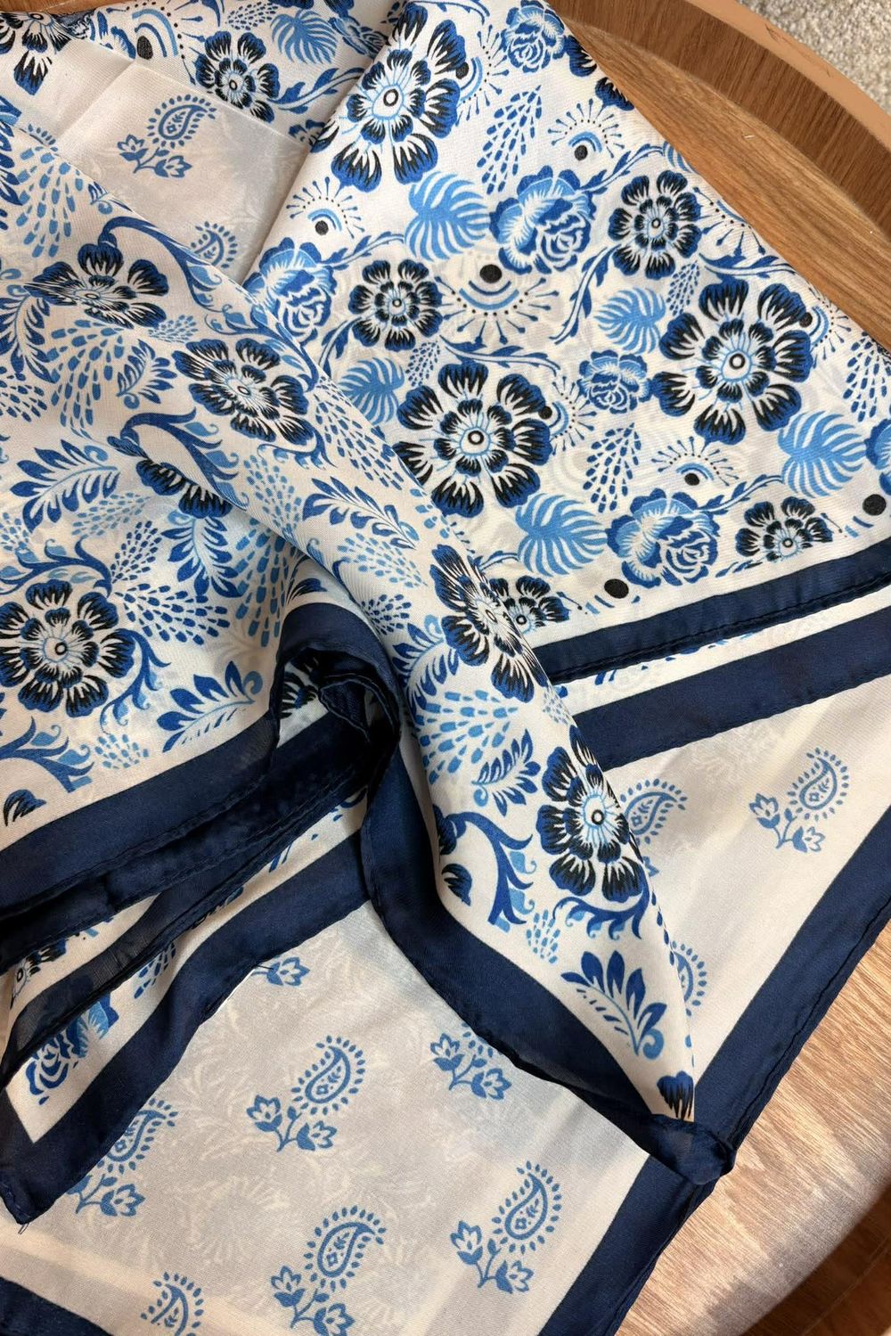 - Women's one-size square scarf in blue tones