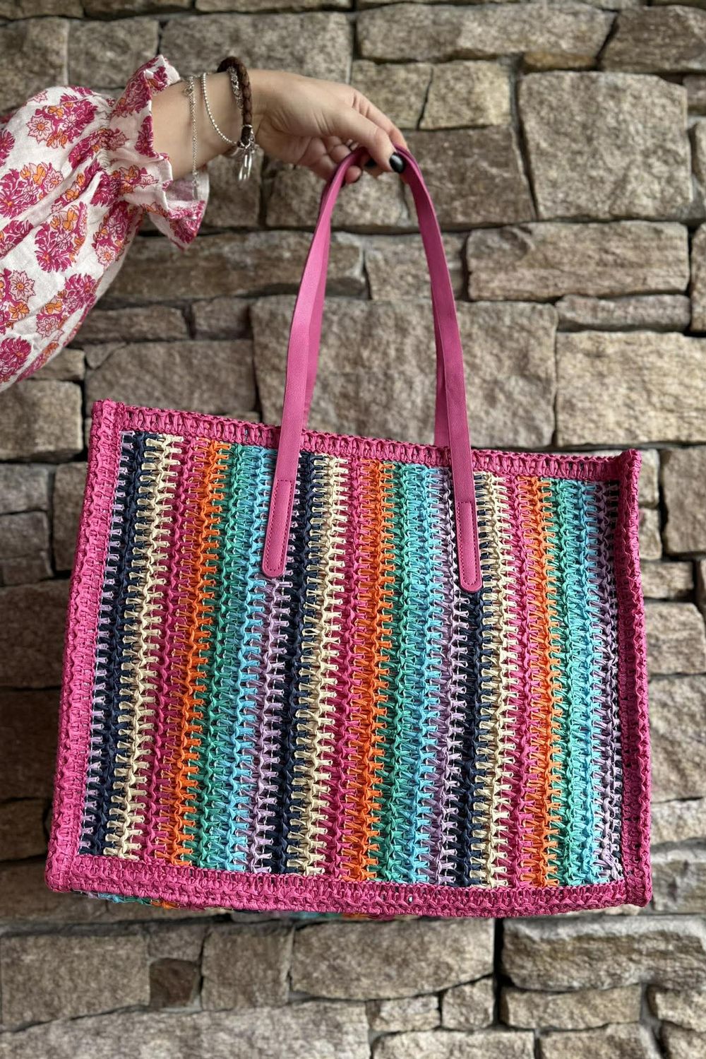 Laundry BKondi Rainbow Raffia Tote Bag Pink /20=