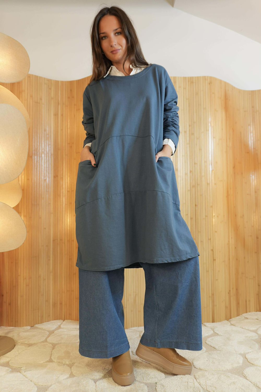 - This piece can be worn as a standalone dress with tights and boots or layered with Barrel Leg Trousers for a more sculptural sports-luxe silhouette.