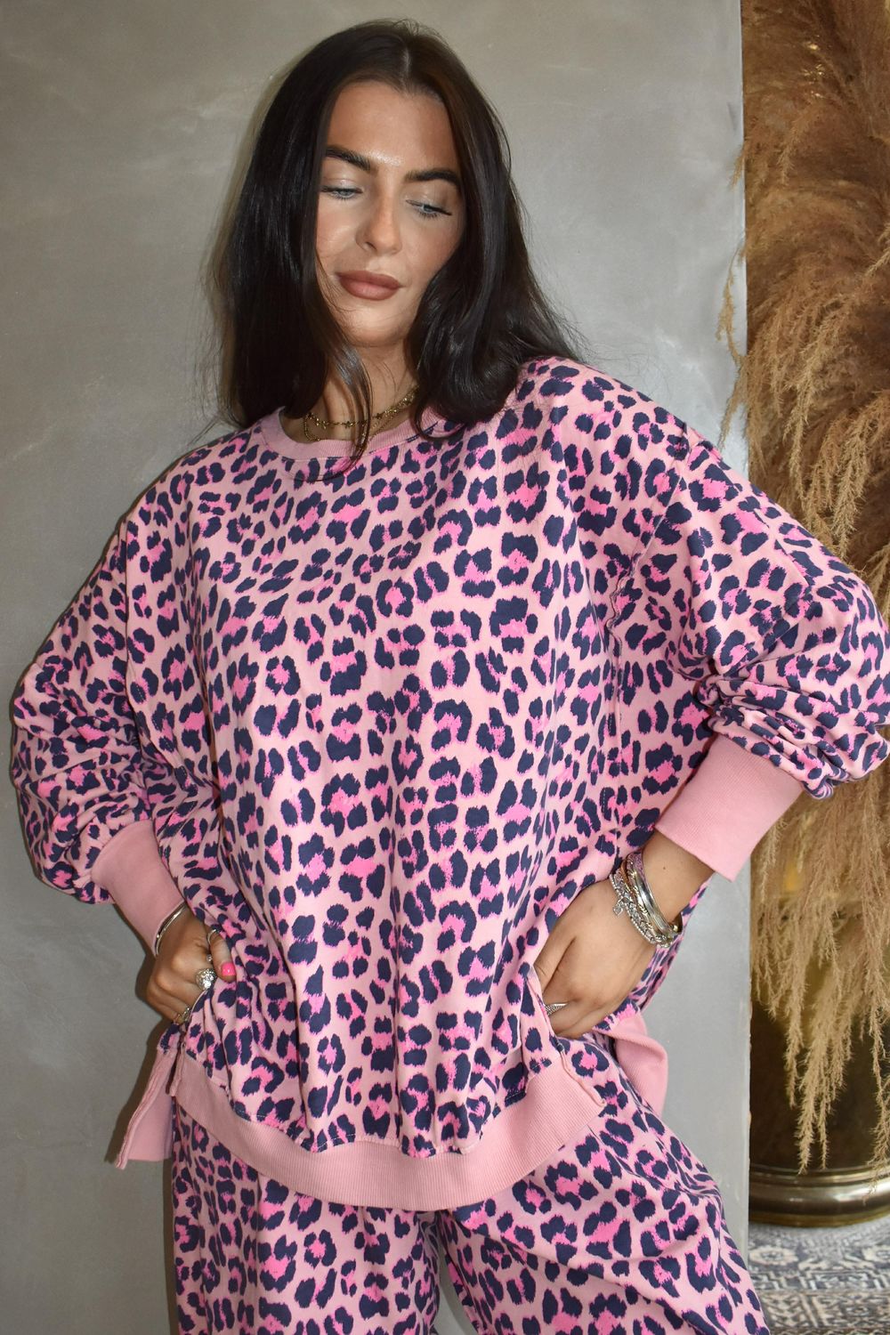 - Women's one-size trousers in candy pink and navy blue