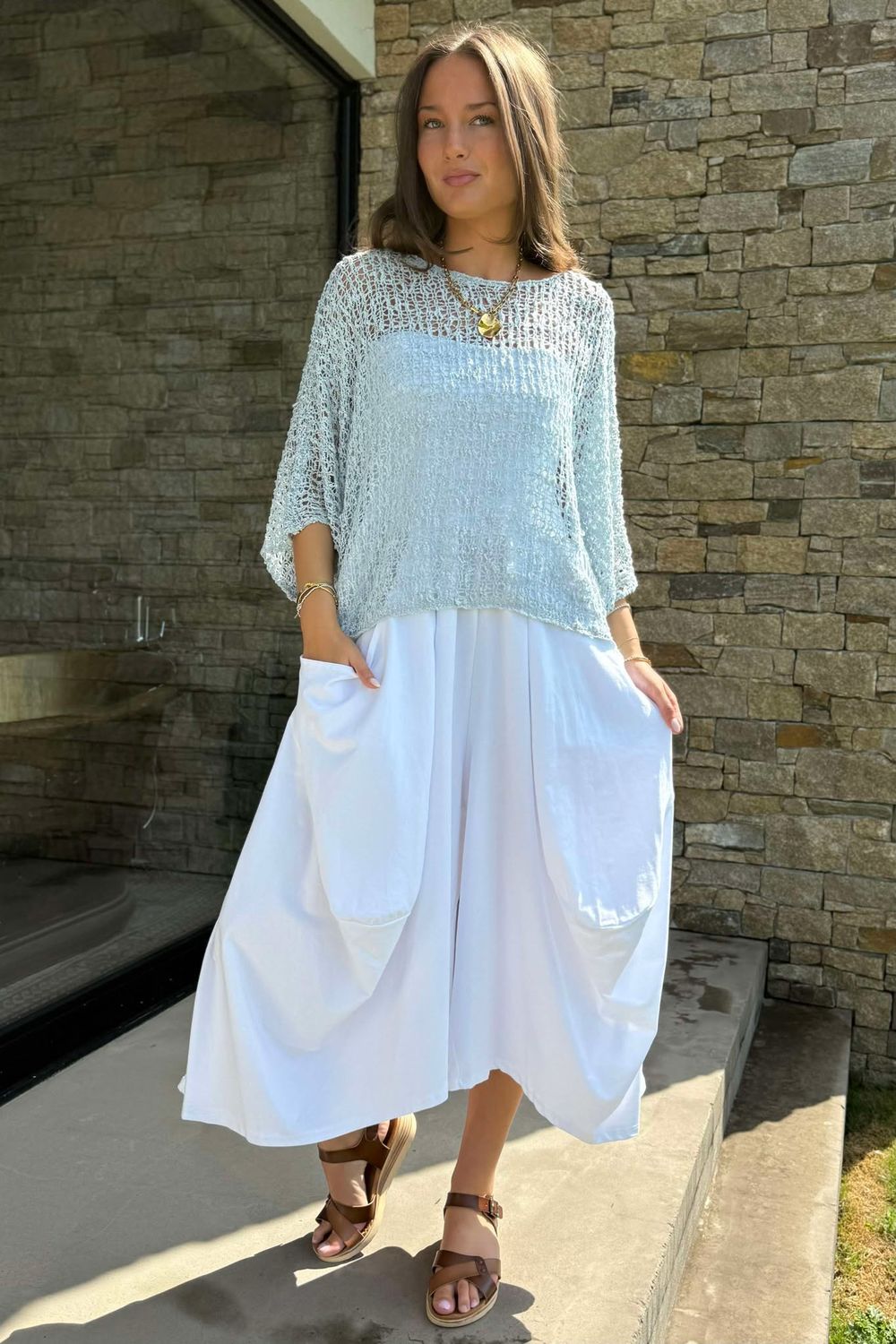Introducing the epitome of summer chic: the Laundry B Cloud Loose Box Knit in a powder blue tone. This season, elevate your style with a harmonious blend of comfort and sophistication. Made from the softest, breathable materials, this cloud-like knit is designed to effortlessly drape over your frame, embracing you in a gentle embrace of luxury.