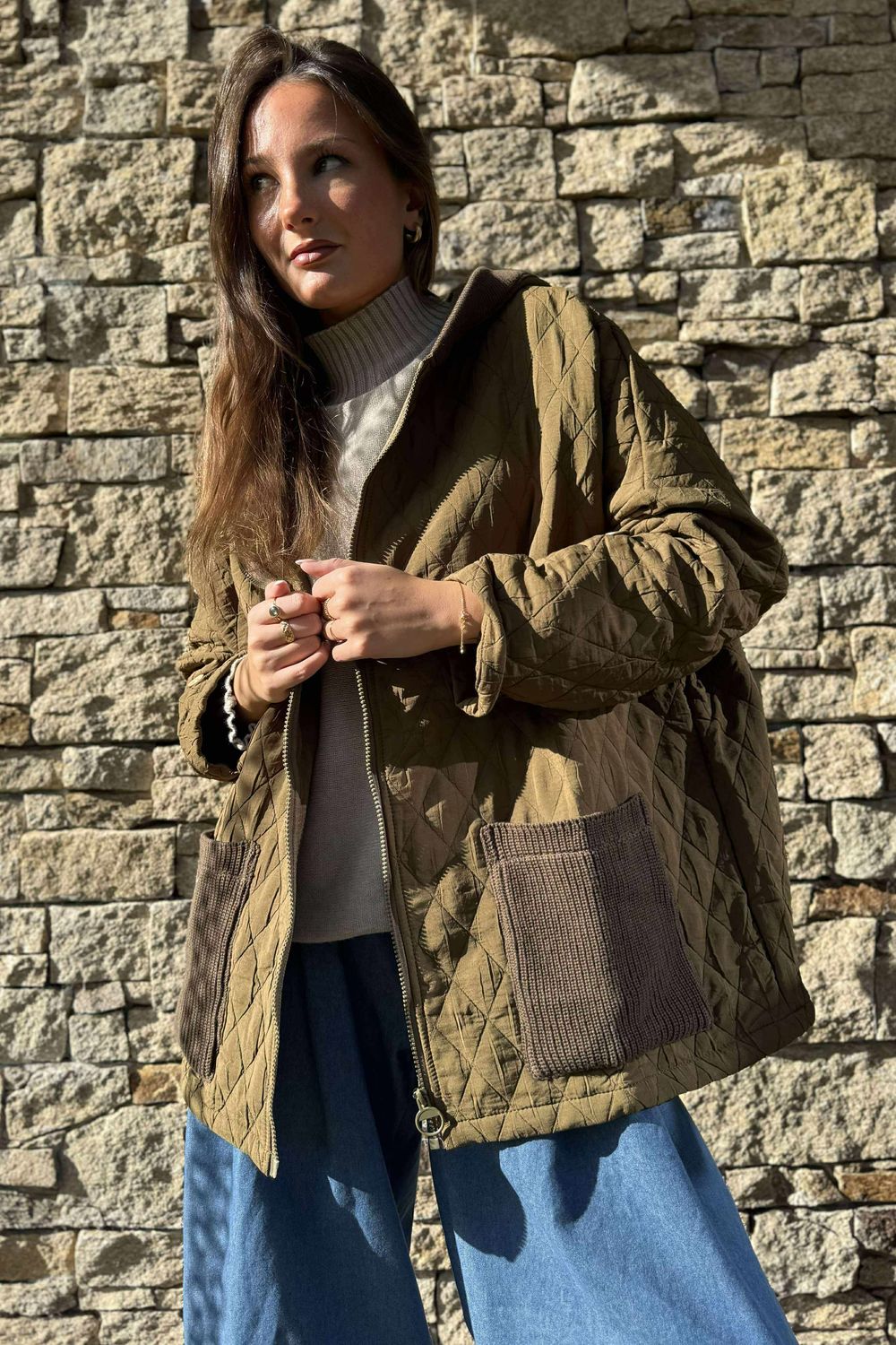 If you’re looking for that one jacket that ties your whole wardrobe together, this is it. Effortlessly stylish and endlessly wearable, this one-size jacket is designed with an oversized silhouette that layers beautifully over everything from chunky knits to everyday basics. The diamond-quilted stitching not only adds texture and subtle detail, but also provides lightweight warmth without feeling bulky. With its relaxed hood and large knitted patch pockets, it brings a cosy, off-duty charm to even your simplest outfits. One of our favourite design touches? The coconut wood button fastenings at the sleeves — wear them full length or turn them up to 3/4 for a more styled look. It’s the kind of piece you’ll reach for again and again — practical, versatile, and effortlessly cool.