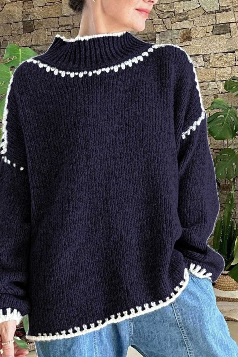 Our Italian made Big Softie knitted jumper collection, now has a jumper with a contrasting whipstitch detail on the hem and cuffs, combines cosy comfort with standout style. When we create knitwear at Laundry B, we ensure each piece is both timeless and effortlessly chic, making it a perfect addition to your wardrobe. This Made in Italy Big Softie Whipstitch Knit Jumper is designed to slot seamlessly into your autumn-winter outfits.