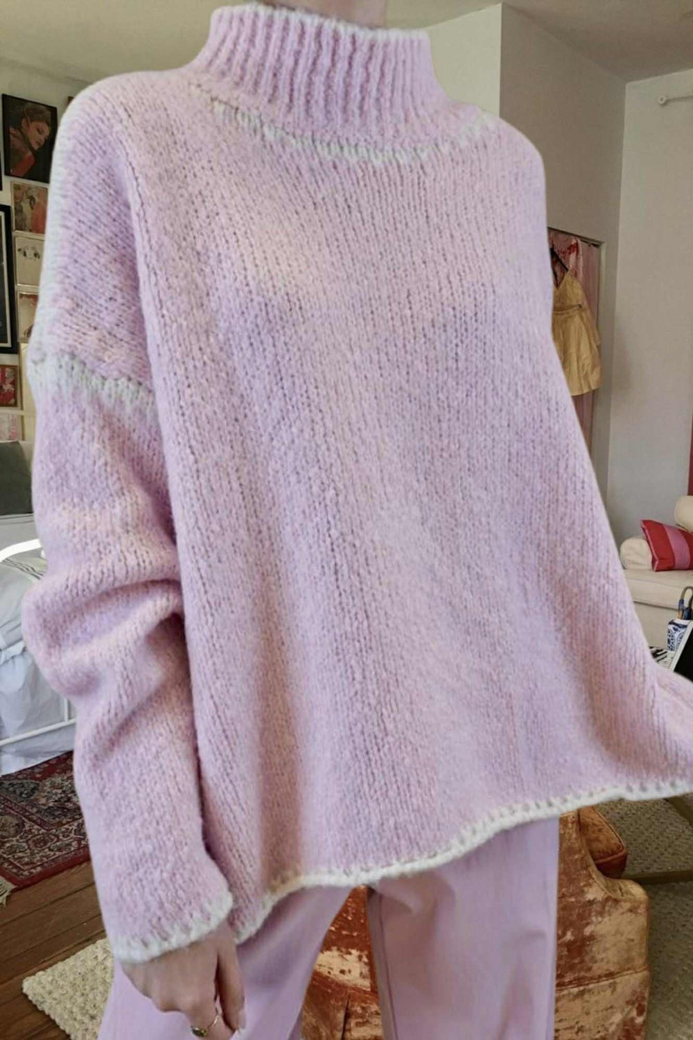 Our Italian made Big Softie knitted jumper collection, now has a jumper with a contrasting whipstitch detail on the hem and cuffs, combines cosy comfort with standout style. When we create knitwear at Laundry B, we ensure each piece is both timeless and effortlessly chic, making it a perfect addition to your wardrobe. This Made in Italy Big Softie Whipstitch Knit Jumper is designed to slot seamlessly into your autumn-winter outfits.