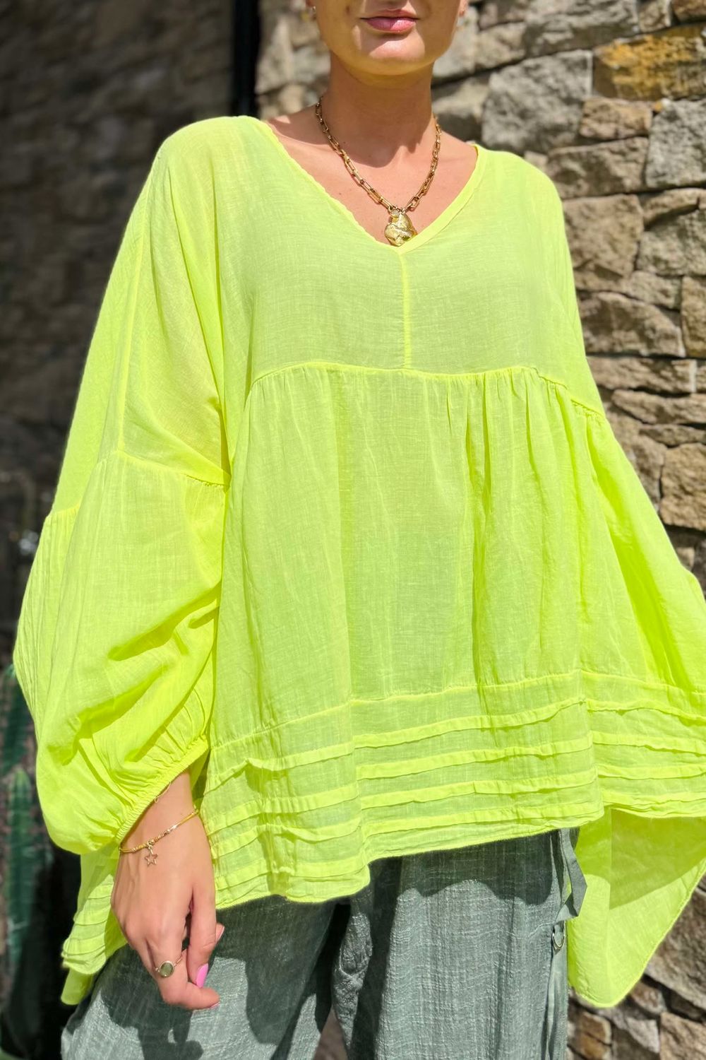 Made in Italy Sa Caleta Cotton Artist Smock Top Citronella /5=