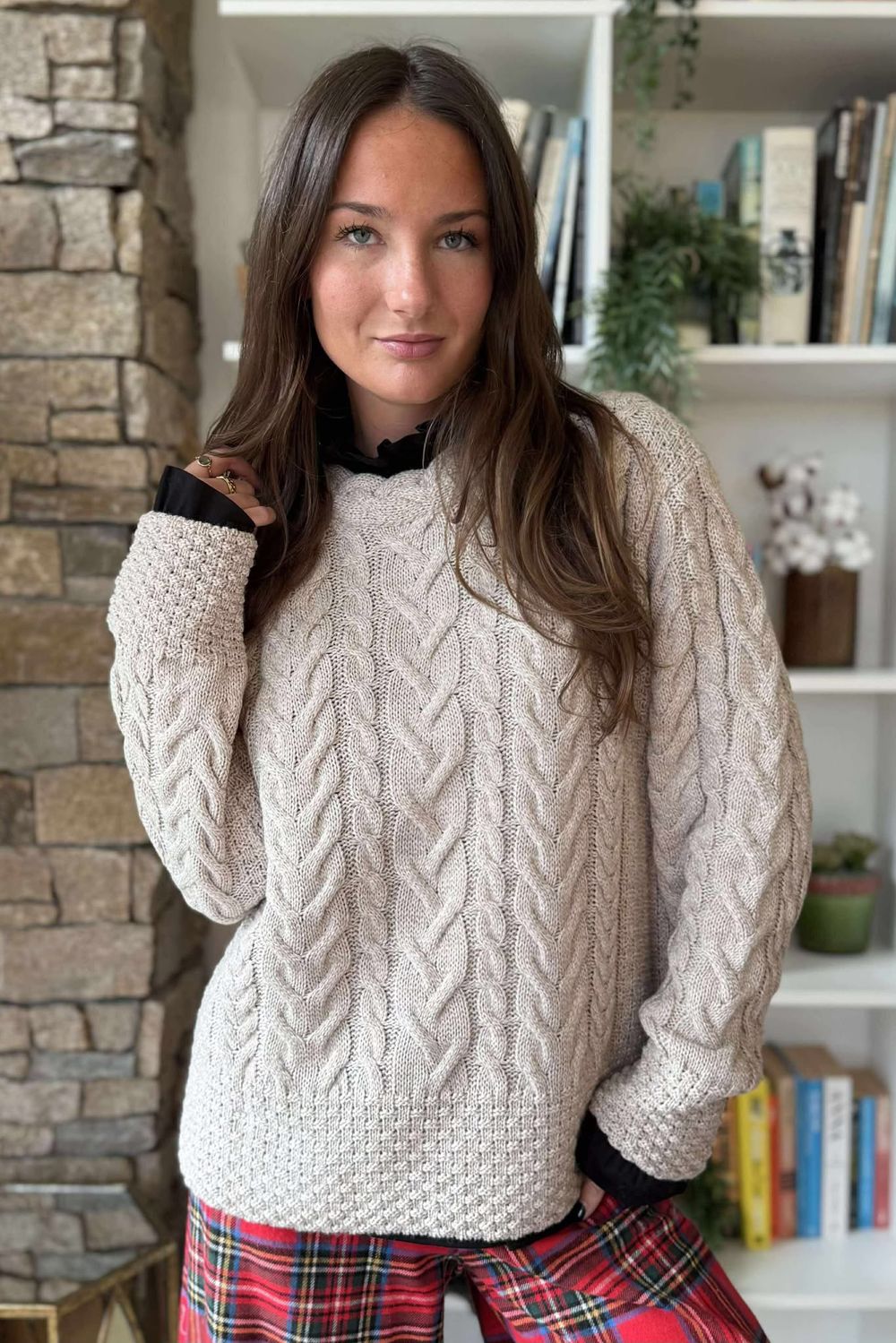 There’s something effortlessly classic about a timeless cable knit, and this jumper is pure heritage charm. Its soft, textured knit and classic crew neckline make it easy to wear on its own, while the versatile design also works beautifully layered over our essential ruffle layering top. Pair it with classic denim for an effortlessly polished look, or mix it with tartan or plaid to create a subtle, playful contrast in texture. Cosy, refined, and quietly stylish, this jumper brings a touch of heritage-inspired elegance to any outfit.