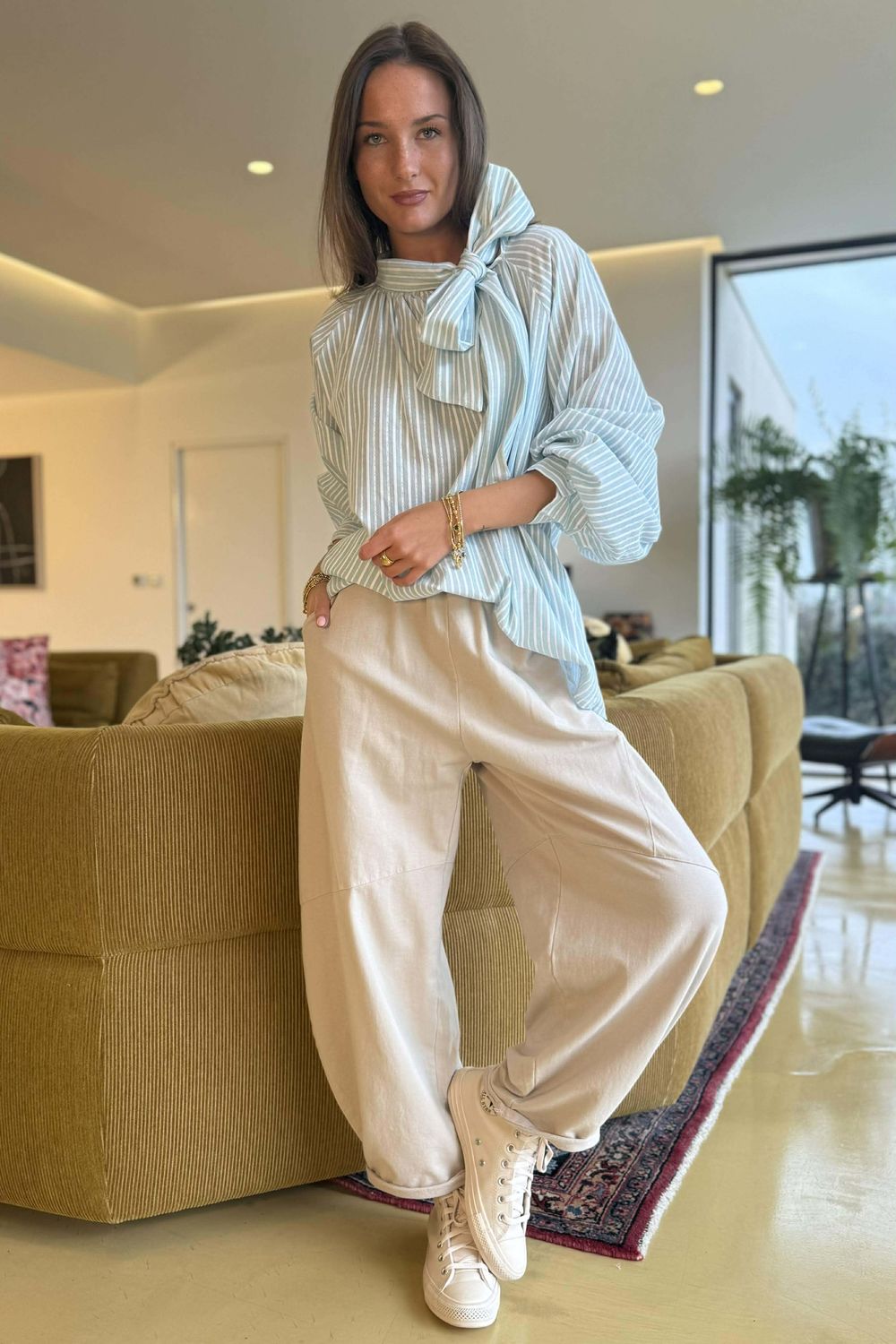 Classic stripe just got a glow-up. This isn’t your average pinstripe shirt—think timeless pattern meets a flirty tie-neck that instantly lifts your look. Paid this piece with your favourite Laundry B denim for effortless cool, or with stone barrel-leg trousers and watch it go full ‘effortless chic.’ Soft, lightweight, and packed with personality, this blouse is the kind of piece that makes you feel like you actually own your style—without even trying.