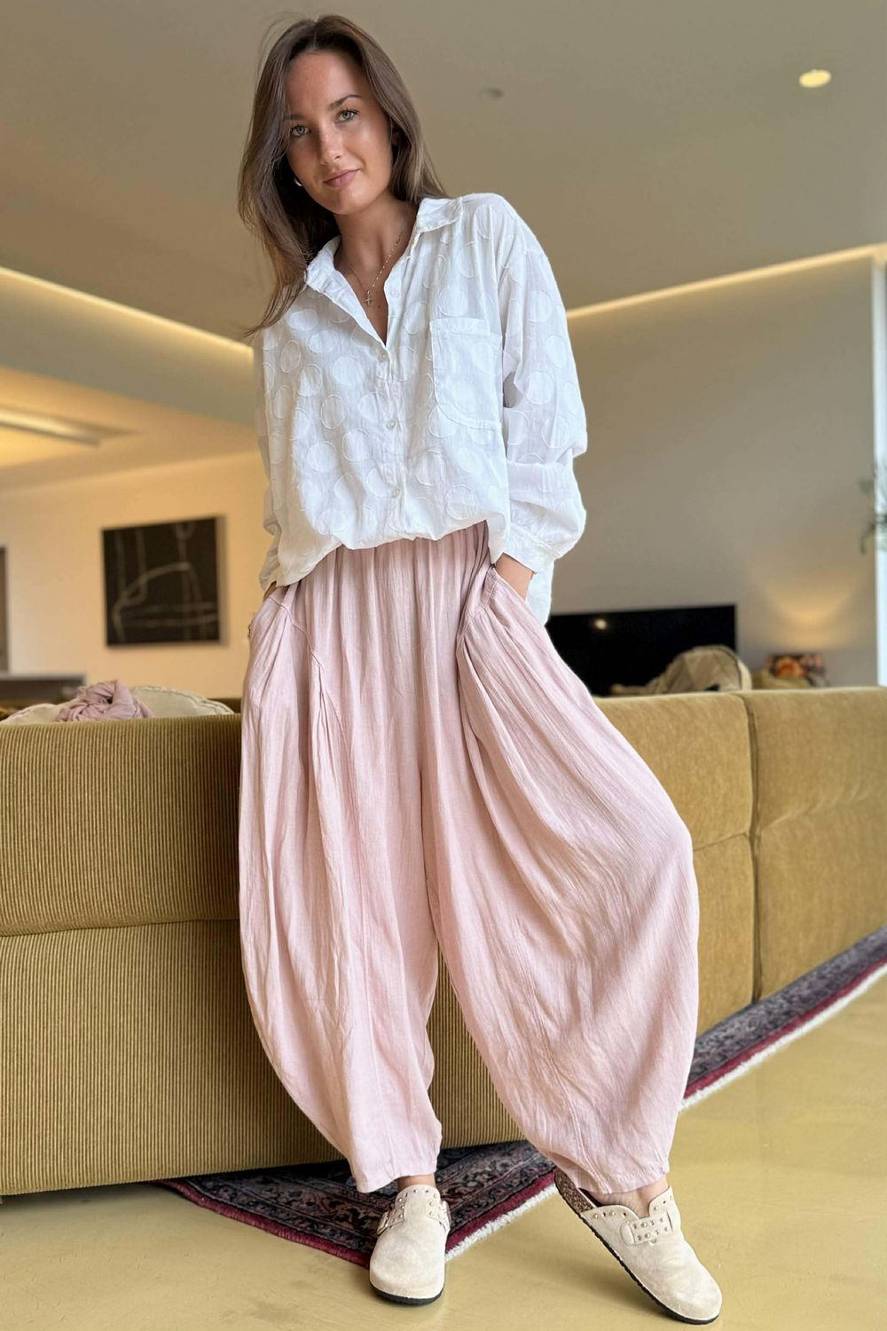Finished in a versatile rose, pink tone, these barrel pants pair effortlessly with crisp shirts, relaxed knits, linen tops, or statement pieces. Whether you’re dressing for work, travel, or weekend wear, they strike the perfect balance between relaxed and polished.