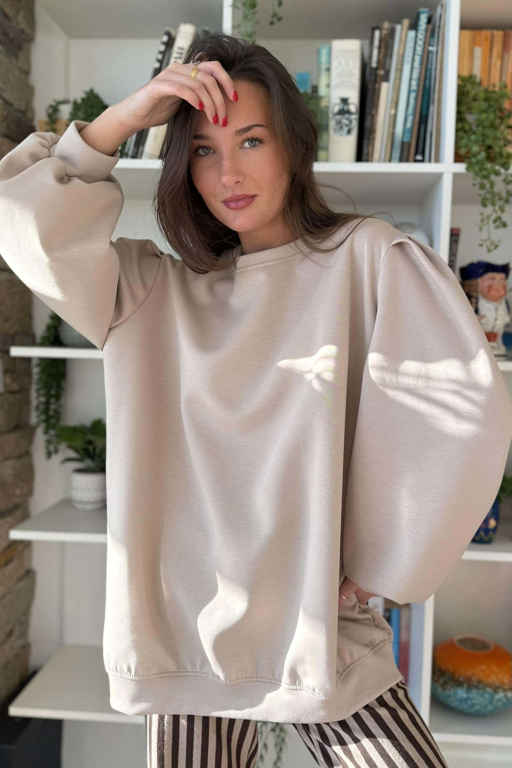 Meet your new wardrobe hero. Oversized, butter-soft, and effortlessly comfortable, this sweatshirt moves with you—half-tuck it or wear long to flatter the bum and tum. Subtle puff sleeves add a touch of modern style, while the longline silhouette pairs beautifully with your favourite denim or statement pants. Cozy enough to relax in, polished enough to step out looking effortlessly put-together.
