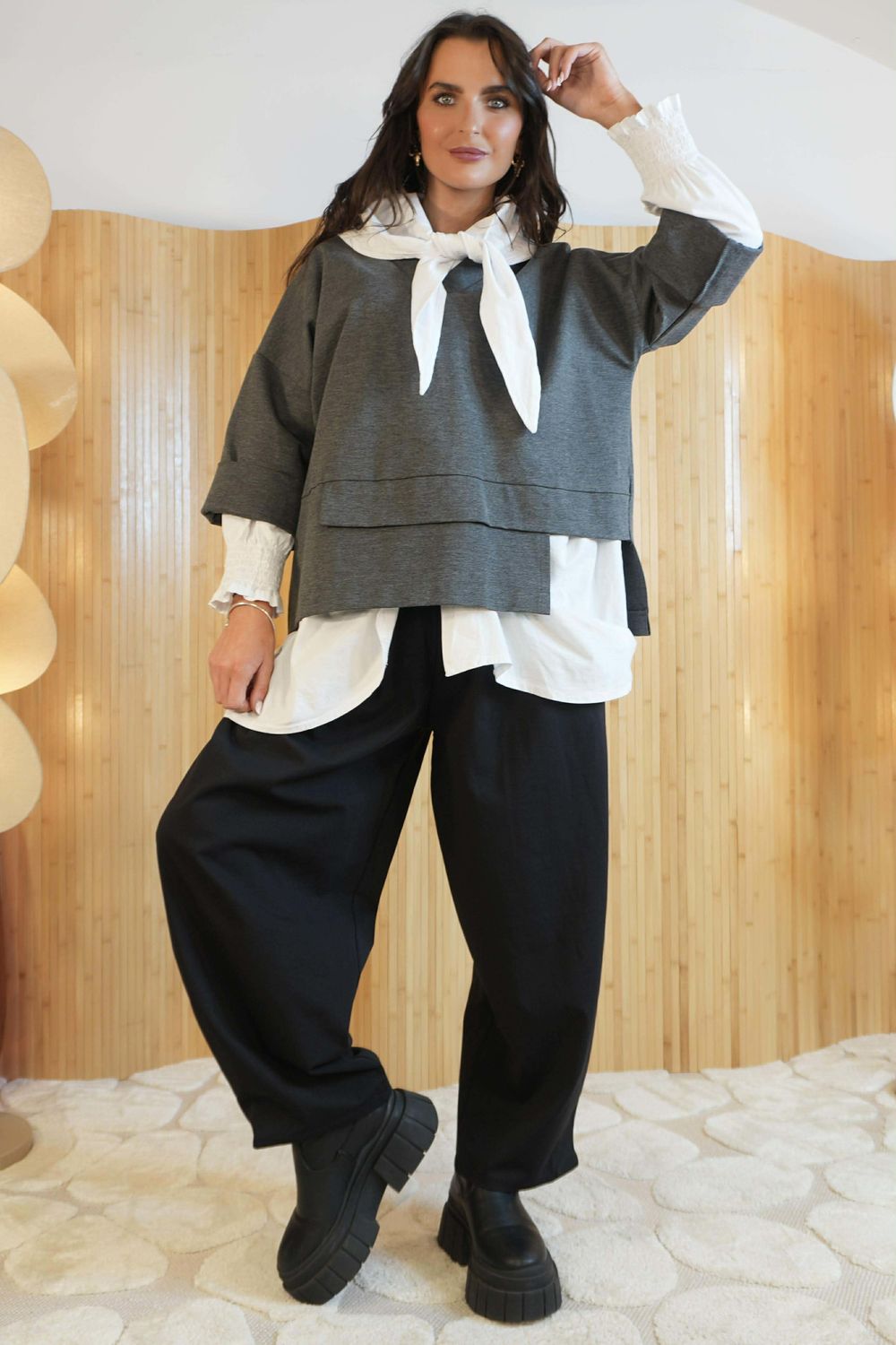 - Relaxed drop shoulder silhouette with a flattering v neckline perfect for sitting one of our fabulous neckerchiefs