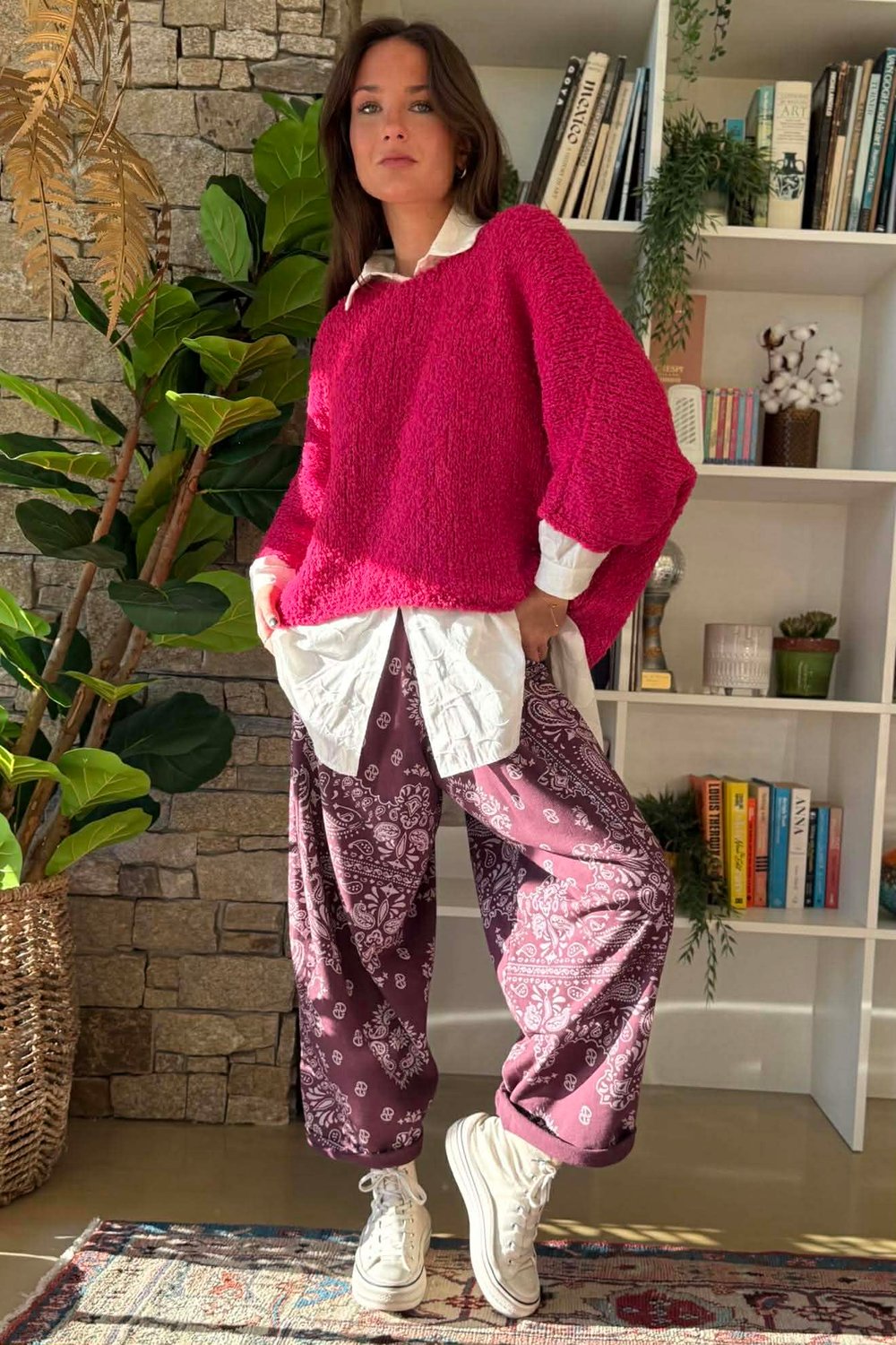 Meet your new winter essential: the original boucle sloppy joe knit jumper in pink. Soft, plush, and crafted with just the right amount of stretch, it moves with you while keeping its shape. The textured boucle knit adds instant luxury and cosy appeal, while the relaxed, effortlessly slouchy silhouette makes it perfect for everyday wear. Layer it over your favourite Laundry b layering shirts, under jackets, or pair with comforable barrel leg trousers —the styling possibilities are endless. Wrapped in warmth and all the hygge vibes, this one-size jumper is the ultimate mix of comfort, style, and timeless charm.