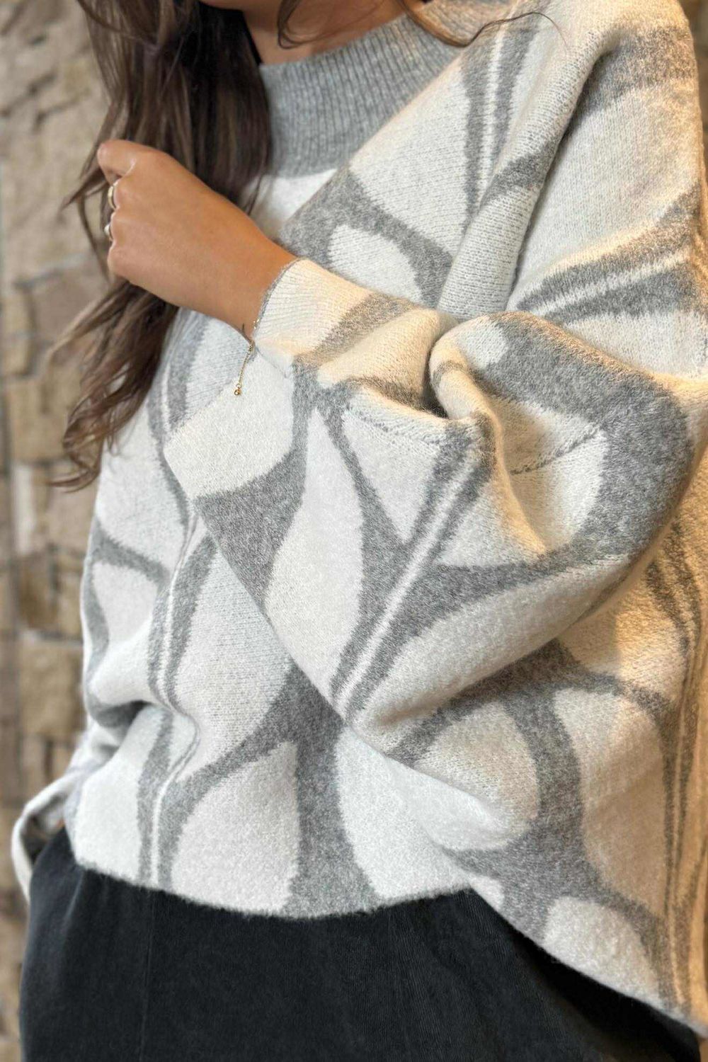Elevate your wardrobe with this stunning top, adorned with a beautiful white leaf motif that whispers sophistication. Designed with a classic round neckline, it pairs effortlessly with any outfit, making it a versatile wardrobe essential. The batwing-style sleeves offer both comfort and movement, allowing you to move with freedom and flair. Crafted from ultra-soft, breathable fabric, this top feels like a gentle hug—utterly cozy and never itchy—perfect for all-day wear.