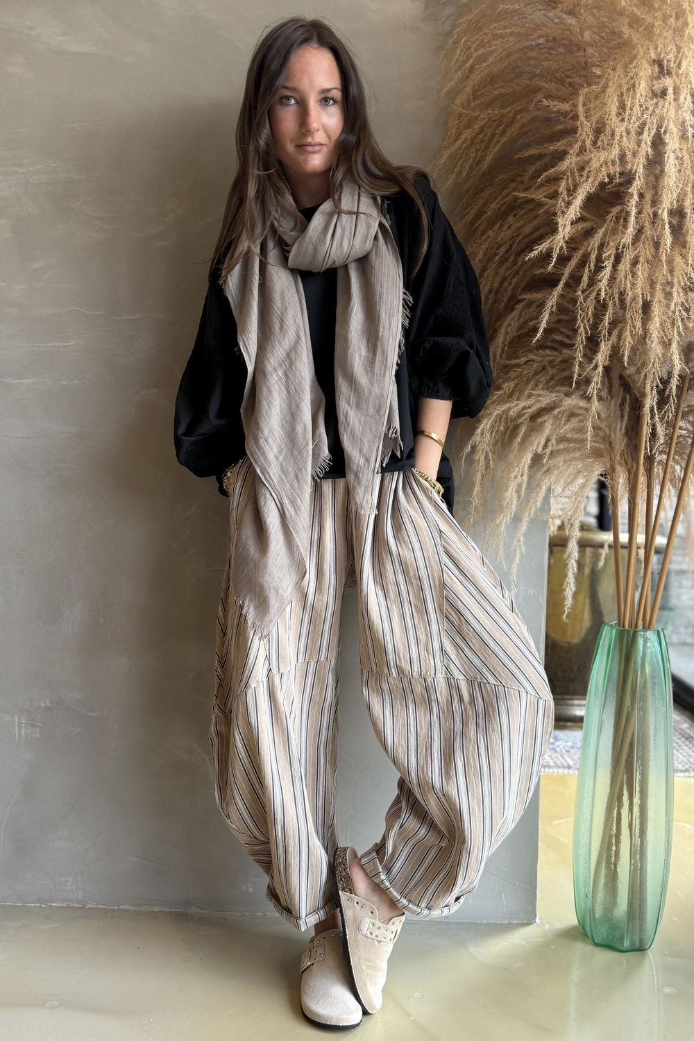 - Designed in a refined barrel-leg silhouette, these trousers strike the perfect balance between modern ease and timeless appeal. The softly sculpted shape creates an effortlessly flattering fit that moves with you, making them a versatile staple for everyday wear.