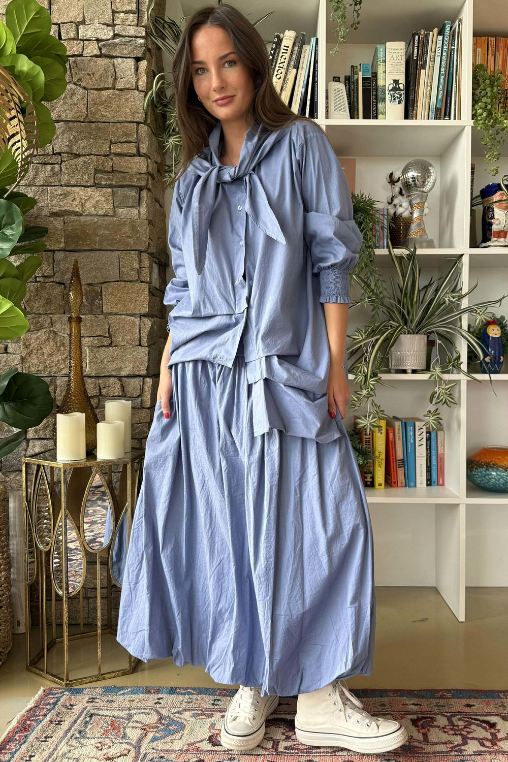Some pieces just work, they slip into your wardrobe and end up being the thing you reach for over and over again. Paloma one of those pieces. Made from lightweight cotton poplin, this skirt feels crisp but soft, with a beautiful bubble hem that gives it just enough shape without feeling fussy. It’s structured in all the right ways but still easy to wear — relaxed, comfortable, and flattering.