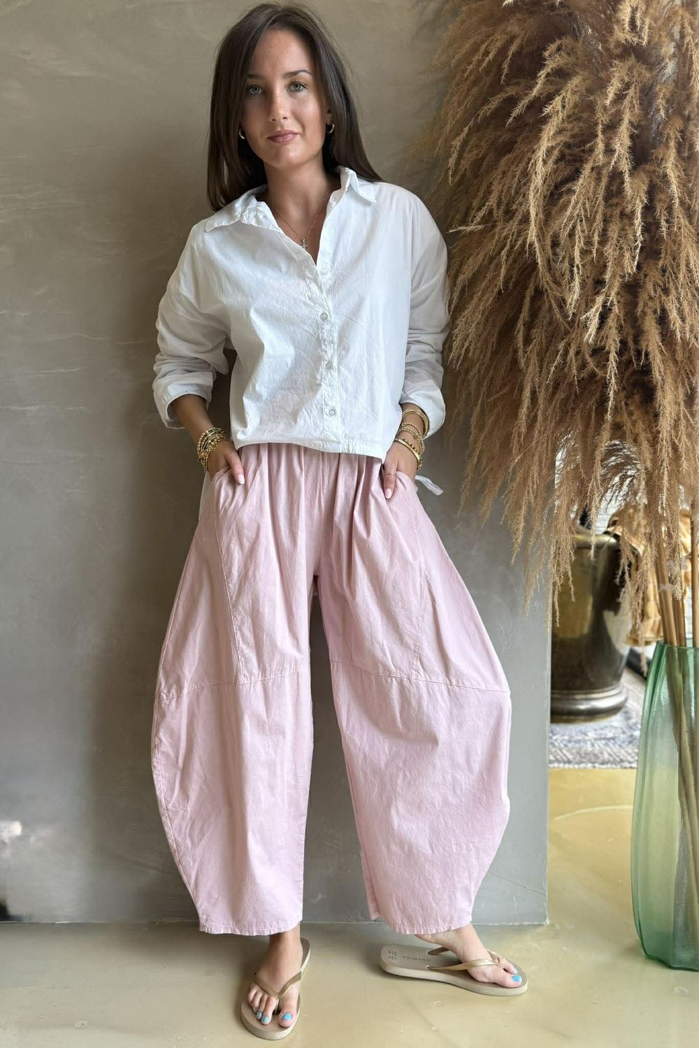 If you love our Paloma collection and the silhouette of our classic barrel pants, this lightweight poplin cotton style is made for you.