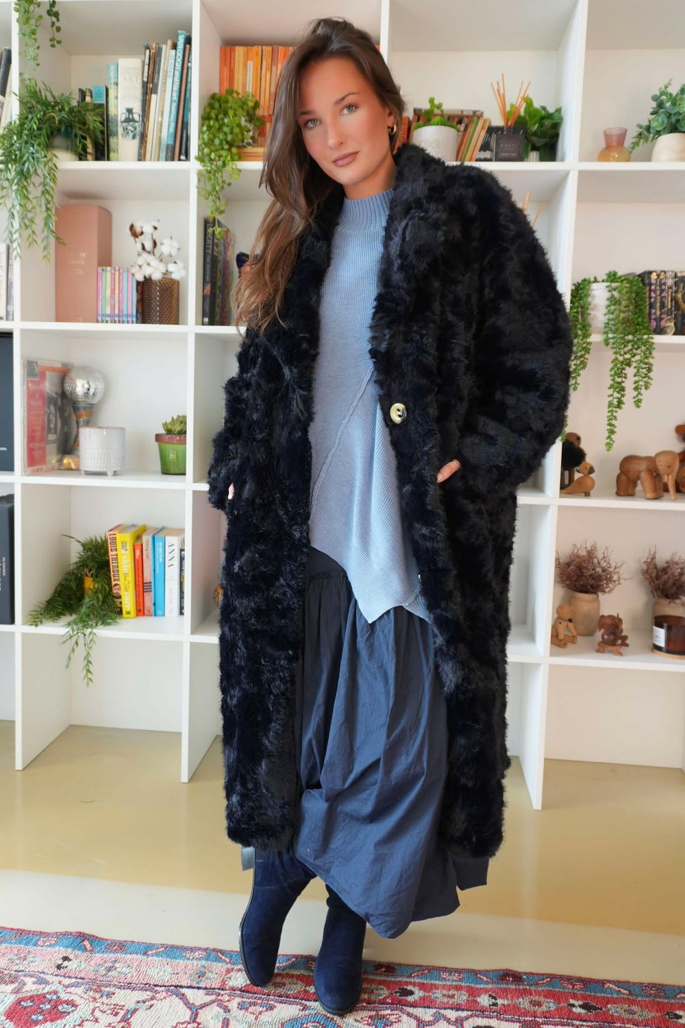 Elevate your outerwear collection with the Paloma Dusk in black. Crafted from premium-grade faux fur with a softly textured finish, it offers a rich, tactile experience that feels as indulgent as it looks. A smooth suedette lining adds warmth without bulk, enveloping you in understated comfort. The button-front fastening allows for effortless wear, while discreet side pockets bring subtle practicality. Designed to transition seamlessly from day to evening, this coat elevates everything from off-duty staples to Laundry b style occasionwear. A timeless layer you'll return to season after season.