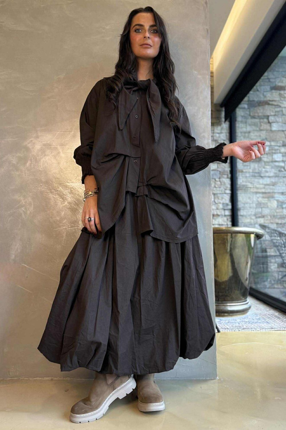A beautifully crafted one-size women’s shirt made from breathable, lightweight cotton poplin that drapes effortlessly and feels soft against the skin. Perfect for transitional dressing or layering, this softly tailored design features a standout collar with a tieable front — adding a touch of individuality and charm.