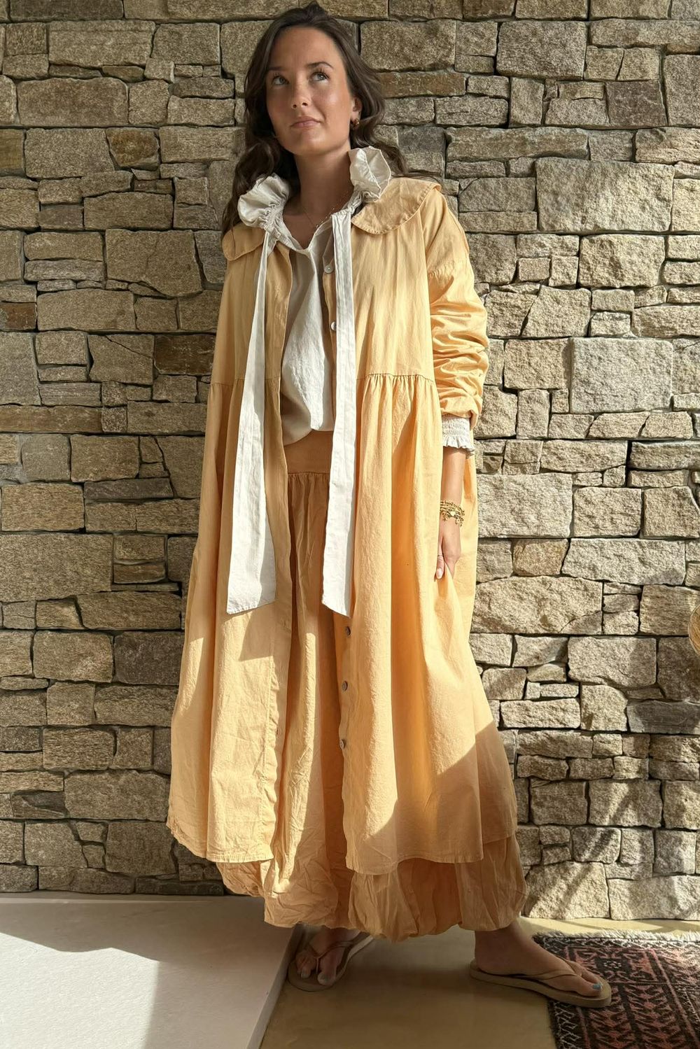 If you loved the Annie Frock Coat and adore the Paloma collection, then this is a must-have for your wardrobe. Crafted from 100% premium cotton poplin, it offers a smooth, breathable feel with a beautifully crisp finish. The longline smock silhouette flows effortlessly for a relaxed yet refined fit, while the soft Peter Pan collar adds a subtle touch of vintage charm. Finished in a palette of timeless, thoughtfully chosen colours, it’s the perfect layer to elevate any outfit. Designed by Joanna with versatility in mind, it pairs effortlessly with pieces across our in-house collections.