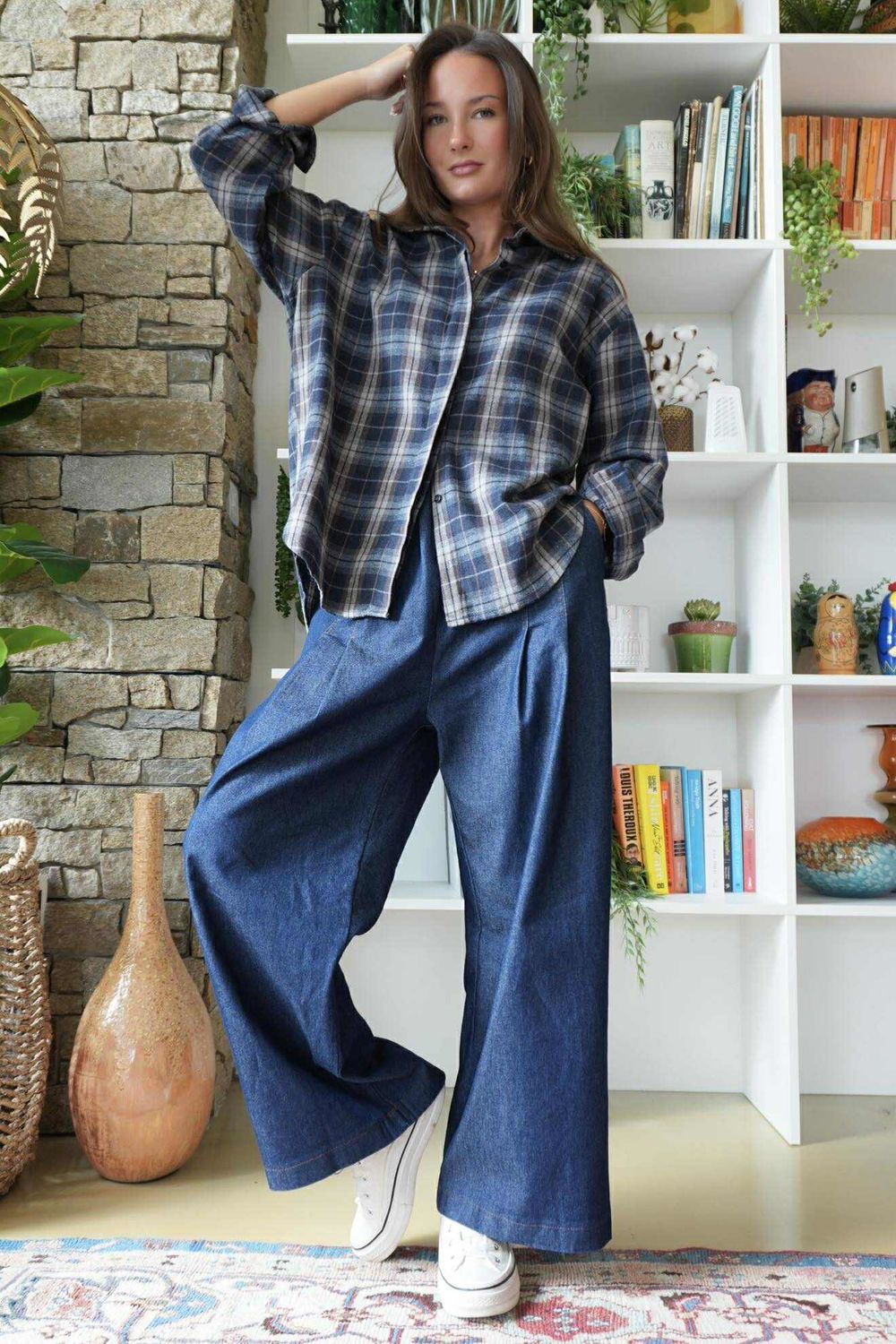 The Patrick Plaid Brushed Cotton Shirt is an everyday essential with just the right amount of edge. This one-size women's plaid shirt is cut from super-soft brushed cotton, offering lived-in comfort from the very first wear. The relaxed silhouette, hidden button placket, and versatile styling — worn buttoned-up or layered open — make it a piece you'll reach for on repeat. Timeless but never boring, it’s the shirt that quietly elevates everything you pair it with.