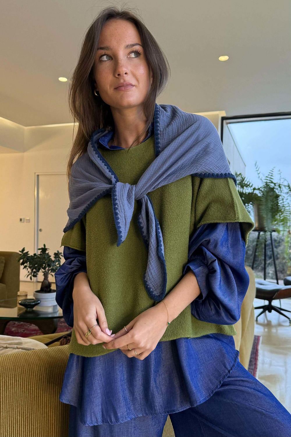 - The whipsticth edging in a contrasting colour, which makes it wearable and effortlessly complements the tones with the pieces already in your wardrobe