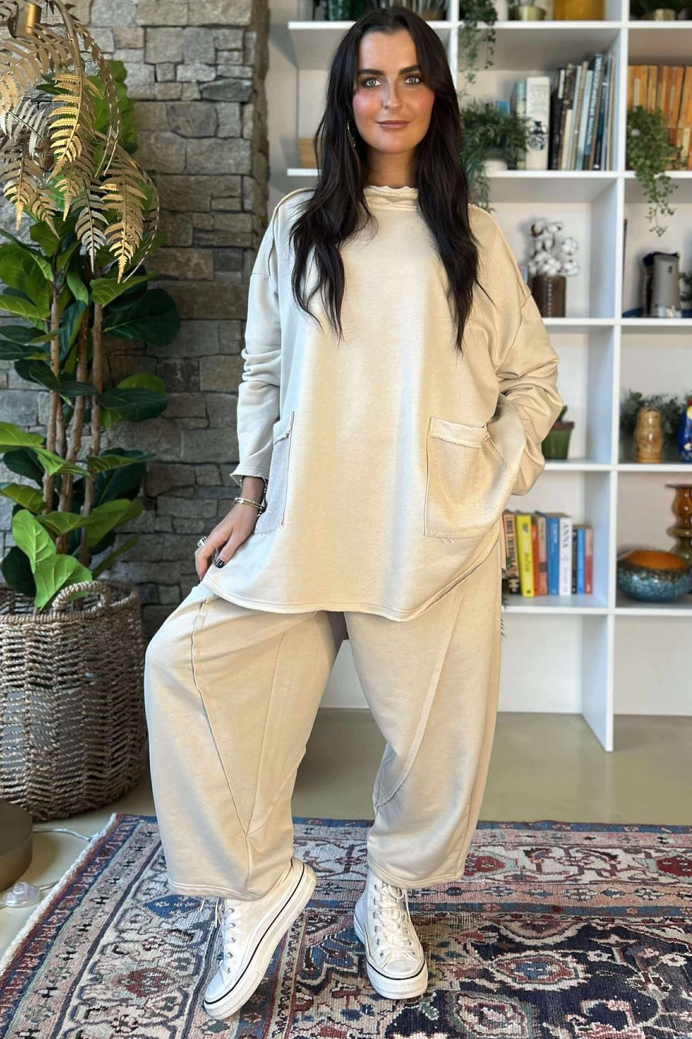 Meet the oversized sweatshirt you’ll quite literally live in. Made from a premium-grade loopback cotton that’s beautifully soft with just the right amount of stretch, it’s comfort at its most elevated. The relaxed funnel neckline frames your face perfectly without feeling restrictive — cosy, but still refined. Raw seam details give it that effortlessly cool edge, setting it apart from your everyday sweatshirt. Pair it with anything from the barrel leg trousers from the Scamp collection to your favourite Laundry B denim or easy leggings — no matter how you style it, this is the piece you’ll keep reaching for again and again