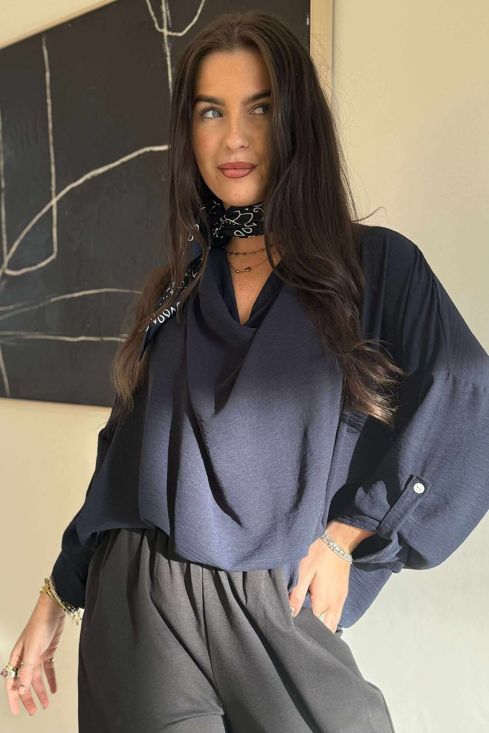Meet the ultimate Laundry B party-wear piece—comfortable, fabulous, and effortlessly chic. This navy blue, one-size blouse is crafted from 100% viscose, giving it that dreamy, lightweight drape that feels as good as it looks. The relaxed cowl neckline brings instant elegance, whether you wear it solo or style it with a neckerchief for a touch of personality. And with full-length sleeves finished with adjustable epaulette fastenings, you can tailor the look to suit your vibe. It’s fluid, flattering, and impossibly easy—exactly how Laundry B does party dressing.