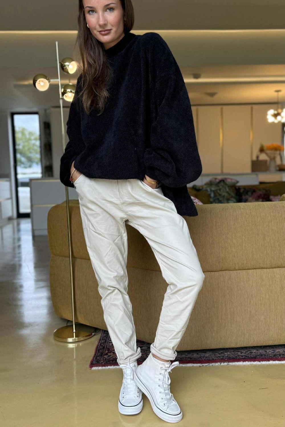 Our Wax Magic Pants are a one-size wardrobe must-have, designed with a tapered silhouette that flatters every shape. Made from super stretch wax fabric, they offer both style and comfort in equal measure. The easy pull-on design makes them an effortless choice you’ll reach for time and time again, while the comfortable elasticated waistband with an adjustable tie ensures the perfect fit. Finished with functional pockets, these trousers are as practical as they are chic — the ideal blend of everyday comfort and sleek styling.