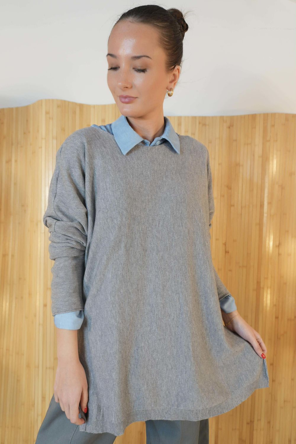 - The round neckline with roll hem detail is a must for effortless styling and screams to be styled with a scarf