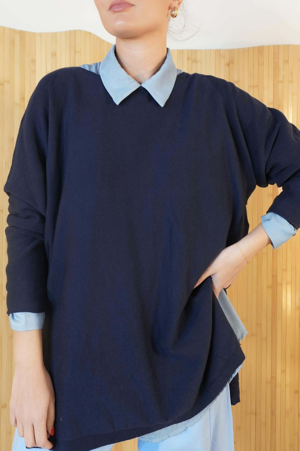 - The round neckline with roll hem detail is a must for effortless styling and screams to be styled with a scarf